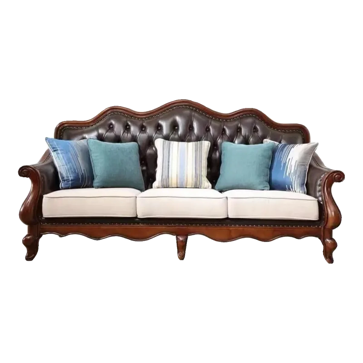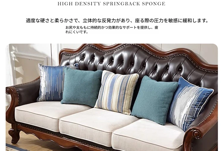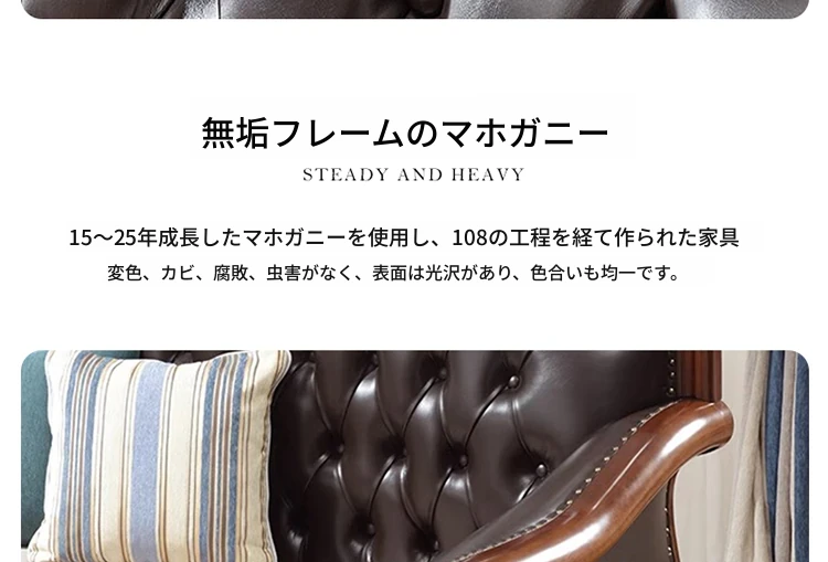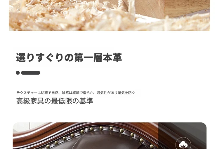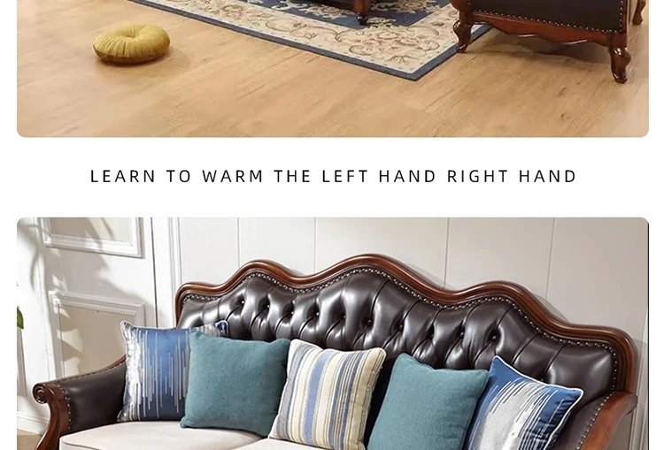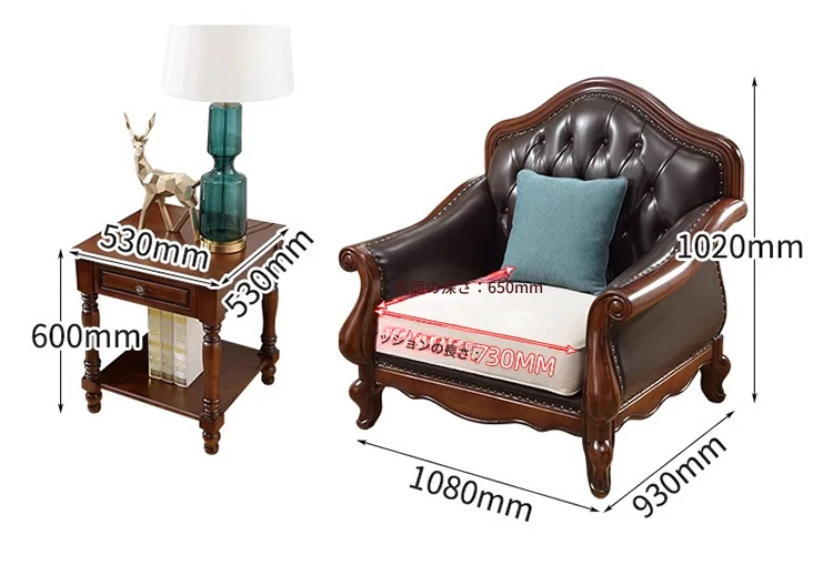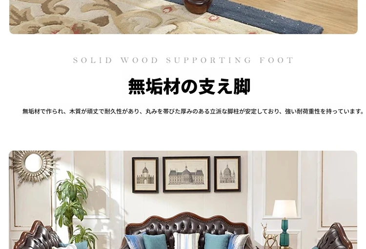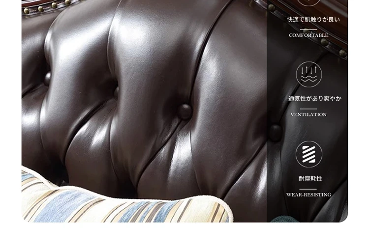 アメリカンスタイルのフルウッド本革ソファセット - ヨーロピアンデザインのダブル3人掛け、小型住宅やヴィラに最適!レトロでモダンなシンプルさが魅力。おしゃれなリビングを演出します!