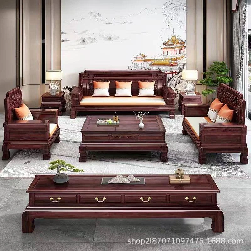 オーストラリア産酸樹の新中式デザイン、実沙XEV全セット!高級感溢れる大彫刻、小型住宅向けリビングに最適な花柄家具。あなたの空間を華やかに演出します!