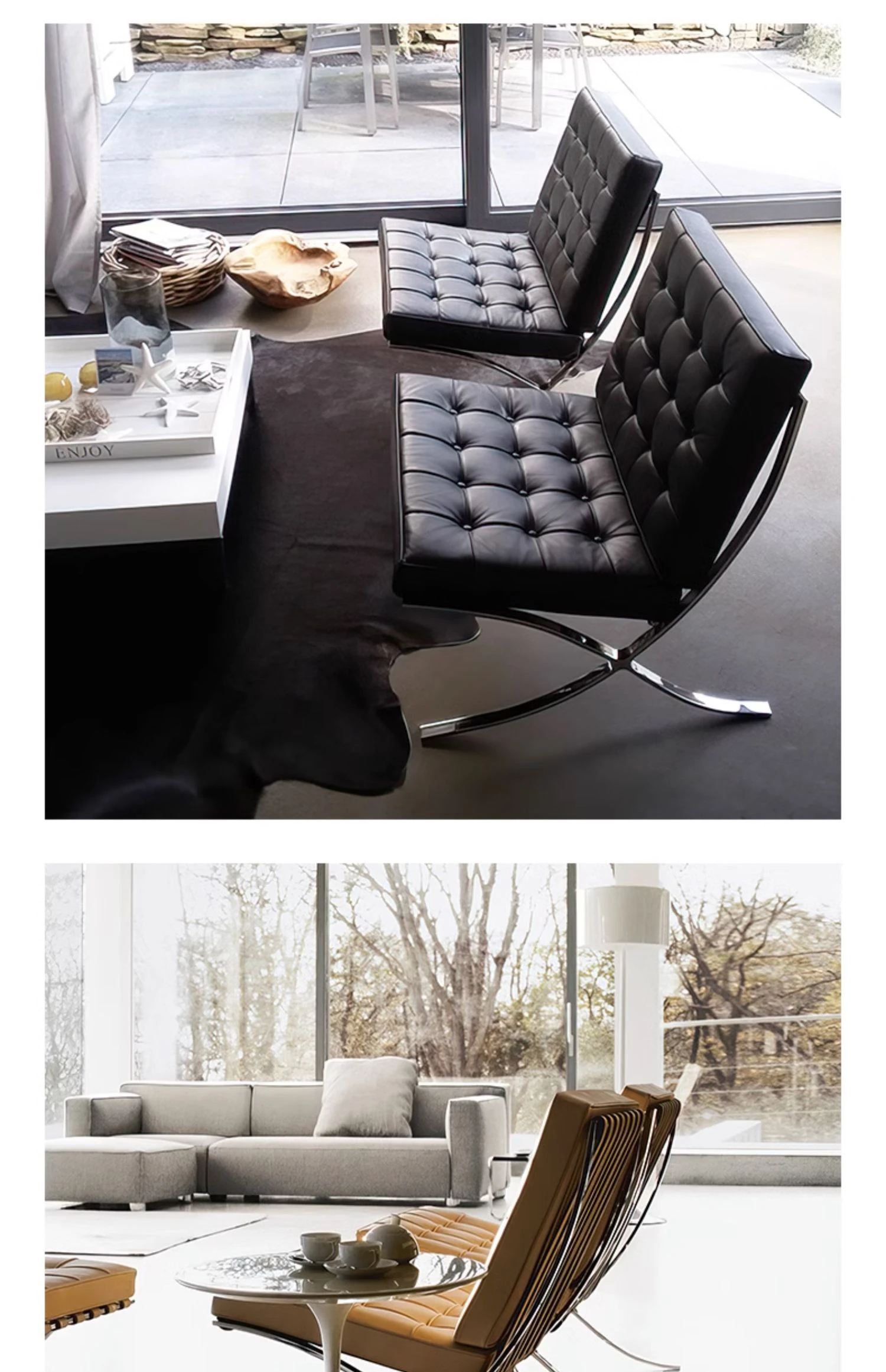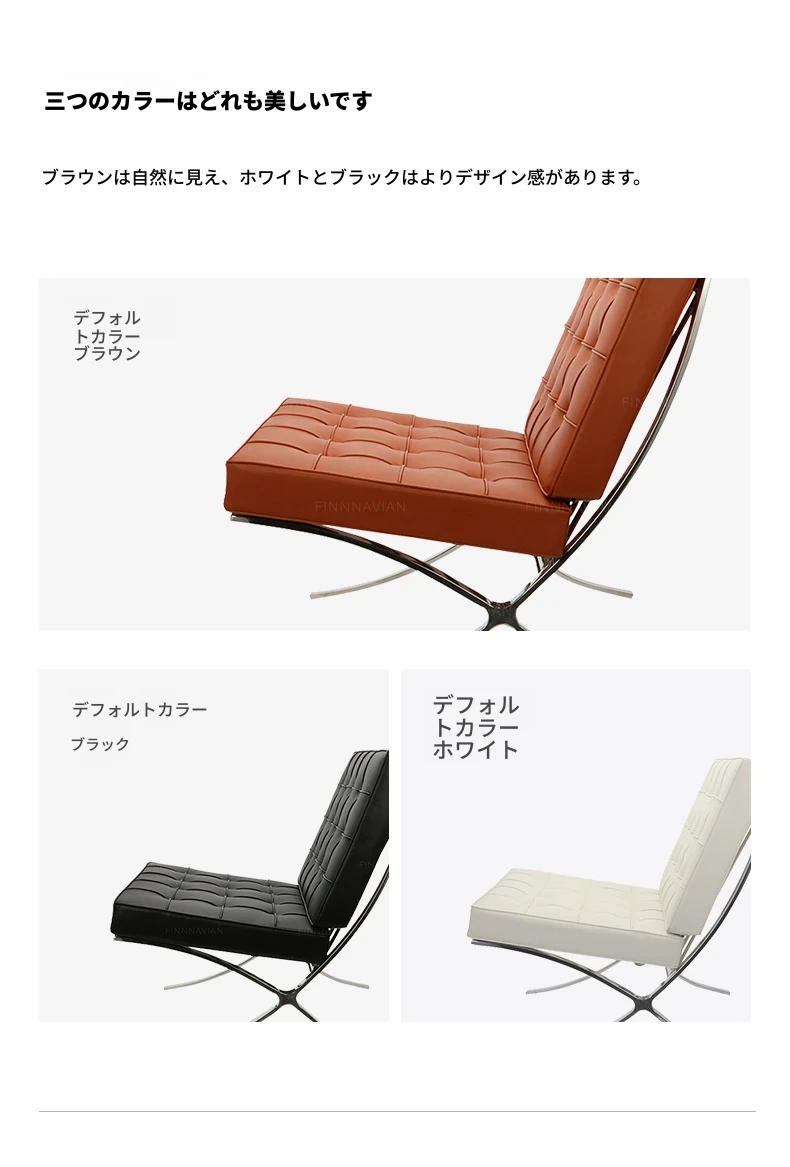 バルセロナチェア|本革製の一人掛けソファ|クラシックバウハウスデザイン|洗練されたリラックス空間を演出する贅沢な椅子