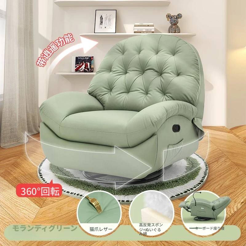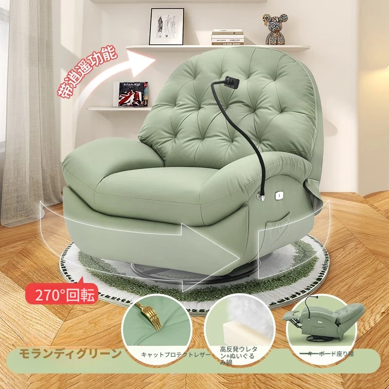 ミントグリーンのキャットタワー+電動リクライニング+回転