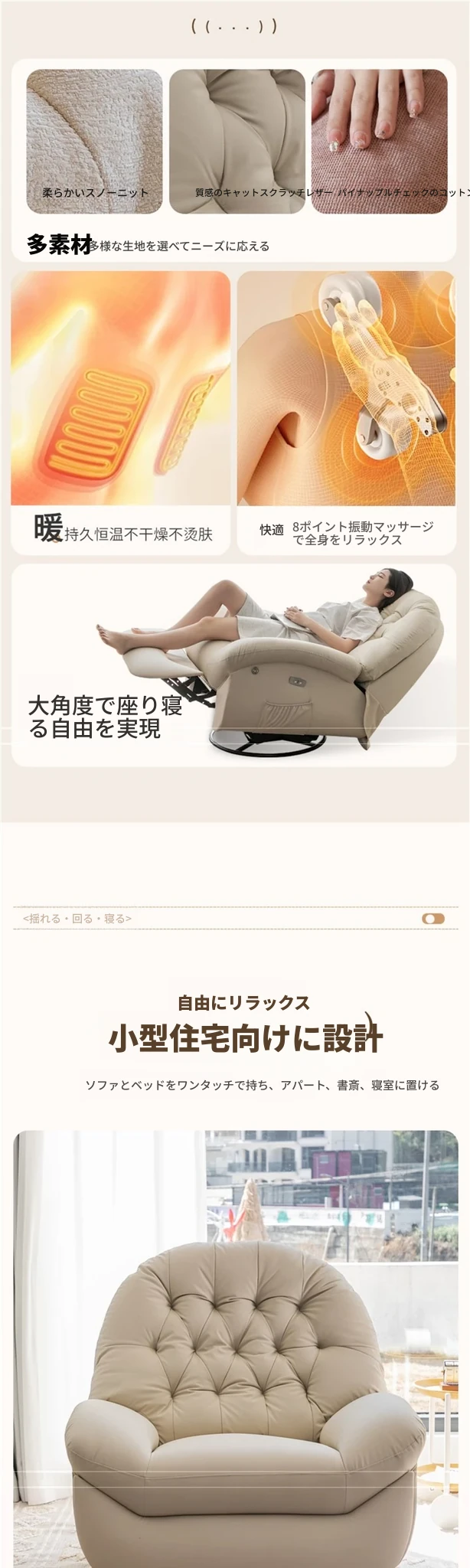 人気の高いファーストクラス宇宙カプセル機能ソファ!リラックスできる電動一人用ソファです。おしゃれなクリーム風デザインで、くつろぎの空間を演出します。あなたのリビングにぴったりのアイテム!