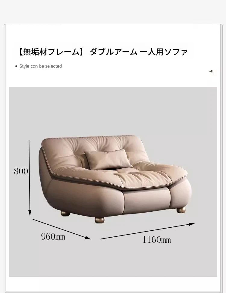 【無垢材フレーム】ダブルアーム 一人用ソファ