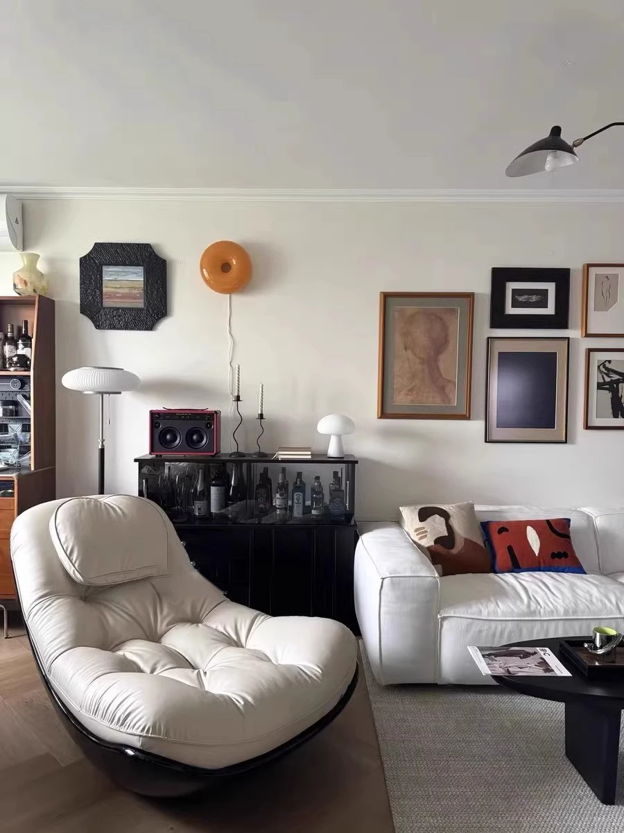 ブラックレザーとグラスファイバーの卵型グラウンドソファ、リラックス感あふれる犬用ベッド、ひとり用椅子、侘び寂びスタイルで心地よいひとときを。あなたのペットに最高のくつろぎを!