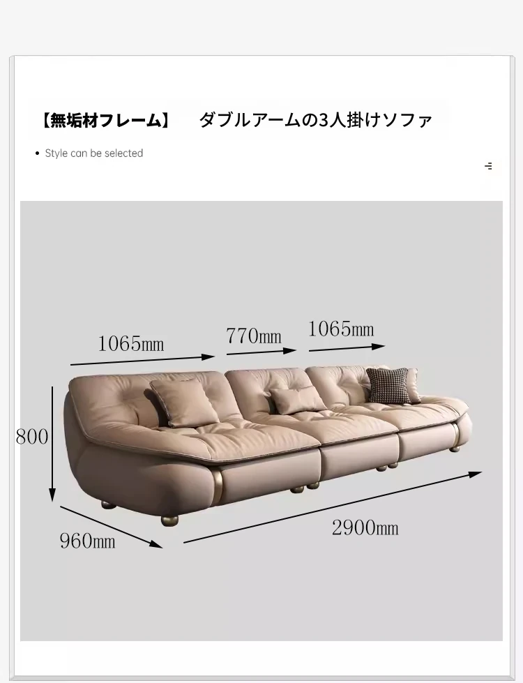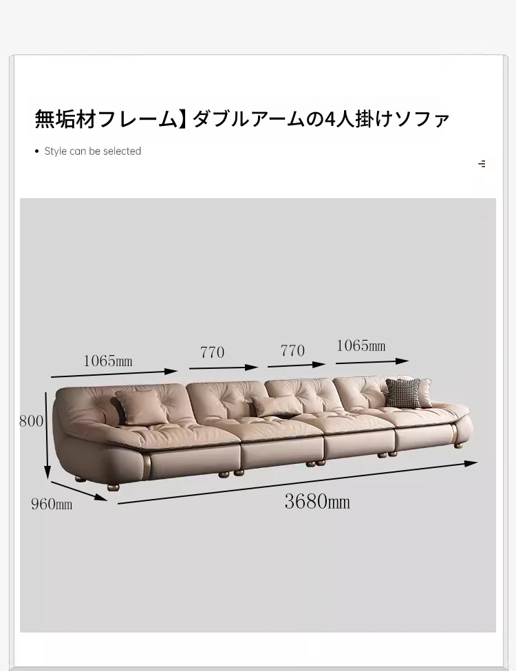 【無垢材フレーム】ダブルアーム 四人用ソファ