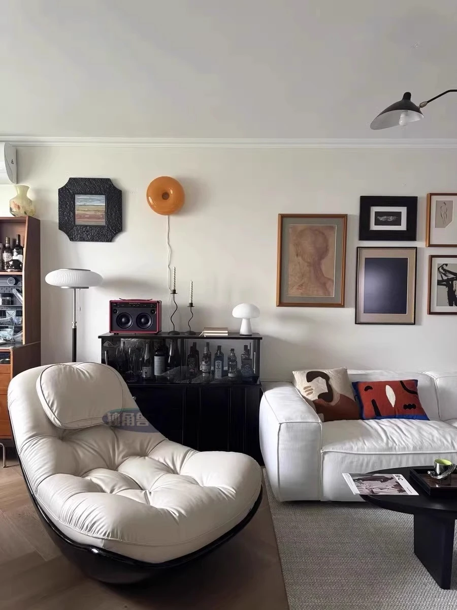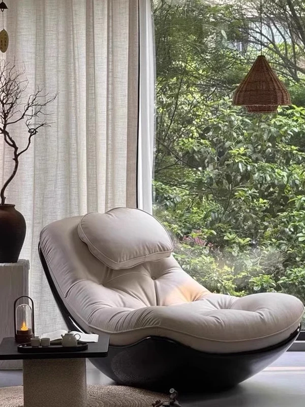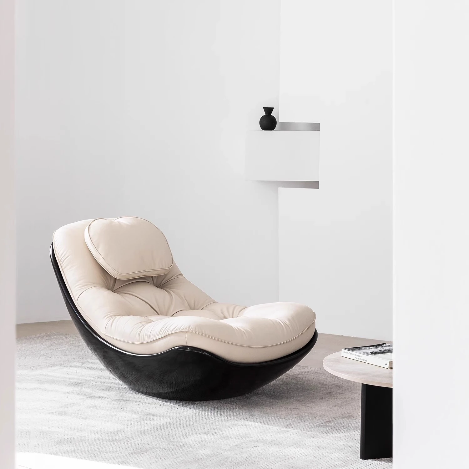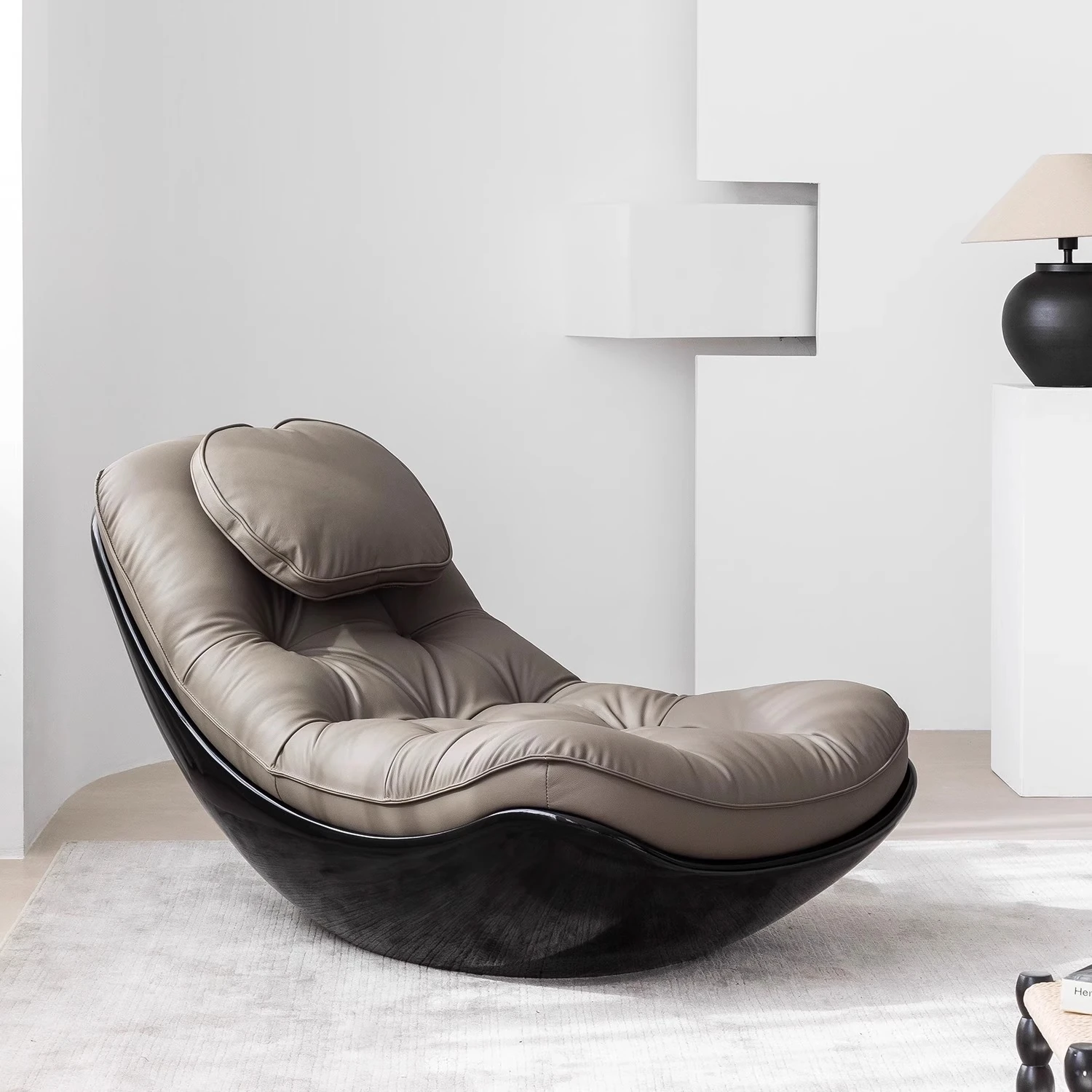 ブラックレザーのグラスファイバー製エッグシェル型リラックスドッグベッド、くつろぎのソファチェア、シングルチェア、侘寂風のデザインで、あなたと愛犬の特別な時間を演出します。