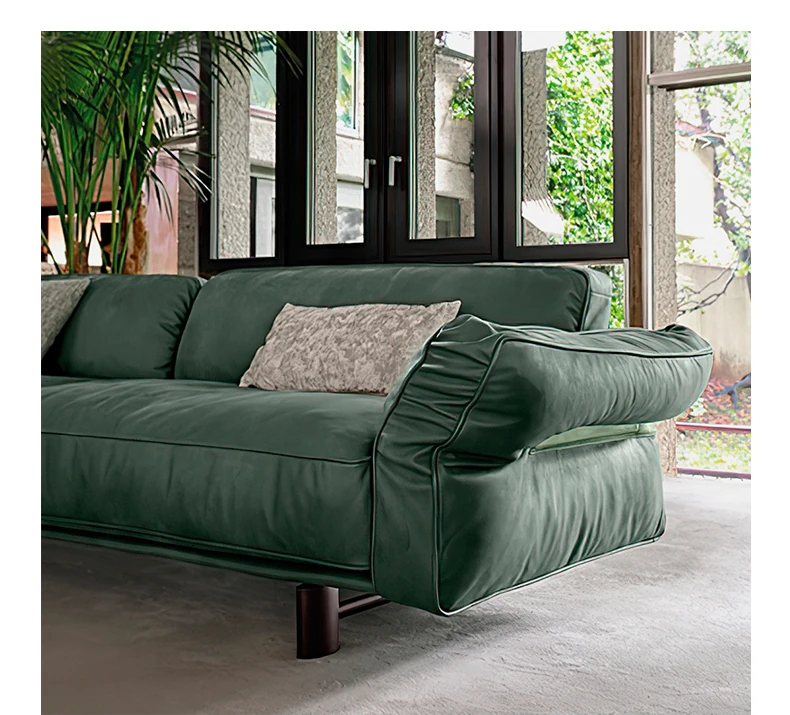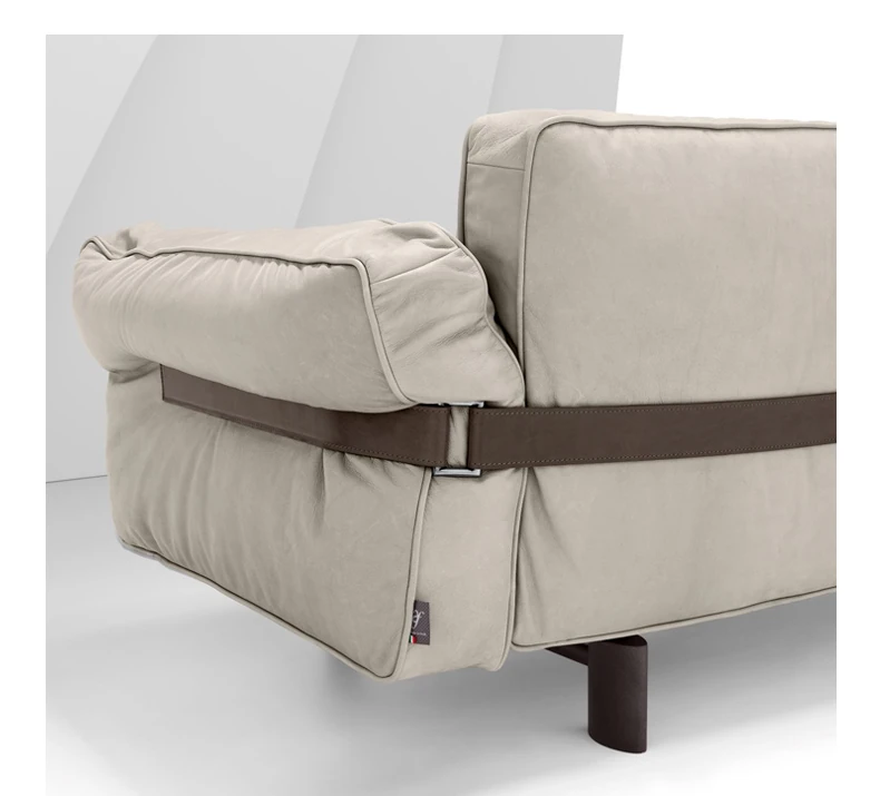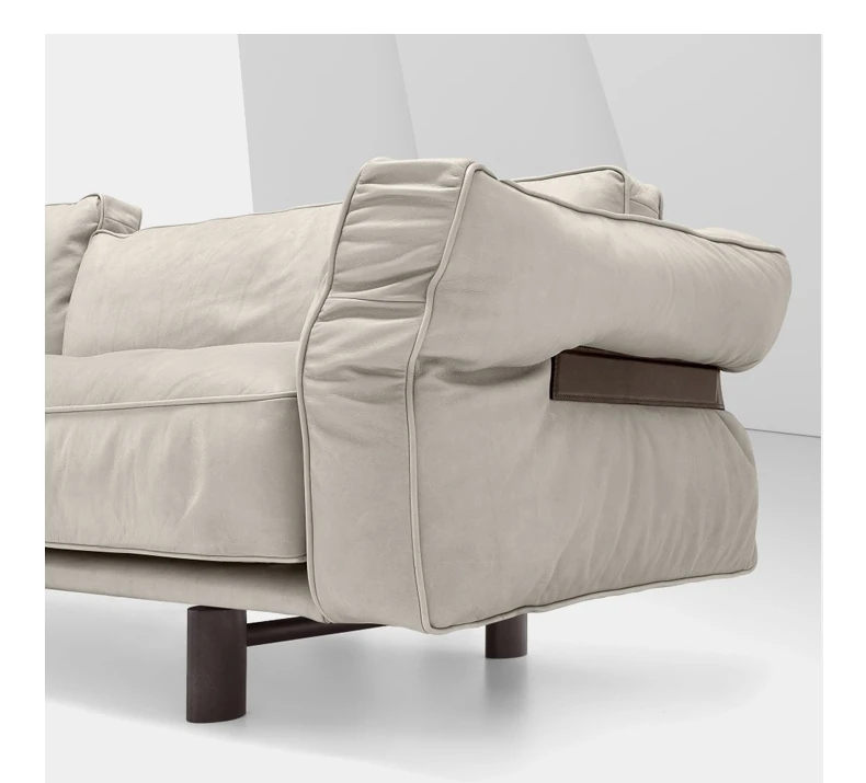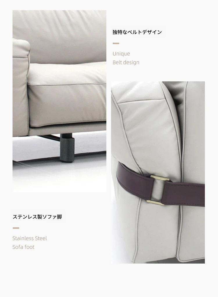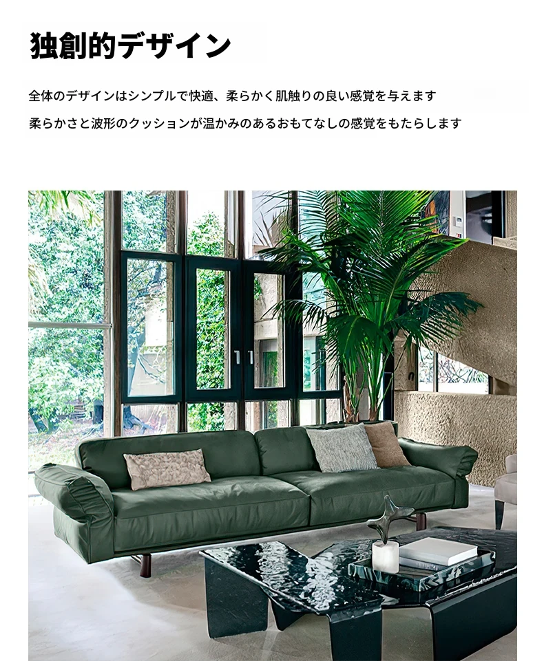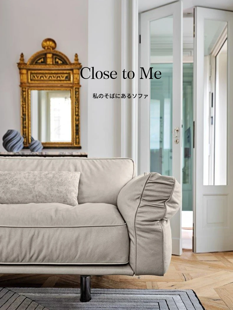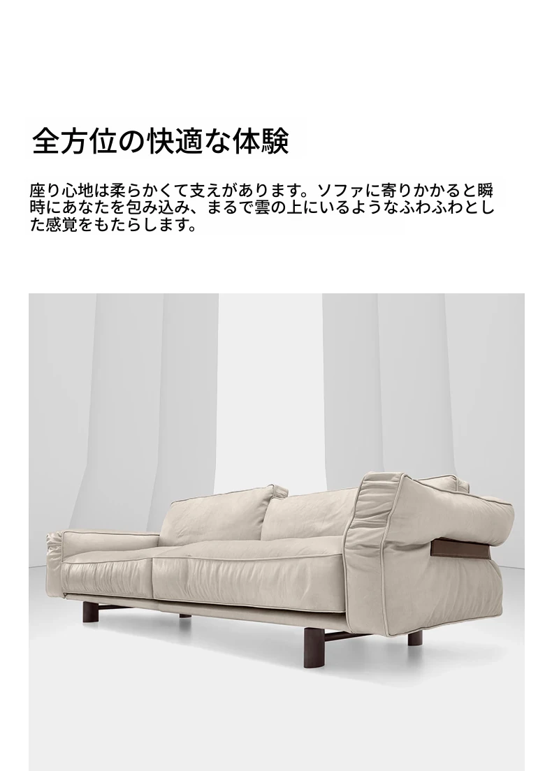 クローザー デザイナーによる本革ソファ - 小型リビングに最適なマット仕上げのトップグレイン牛革使用、イタリアン・ライトラグジュアリーのミニマリストデザインで、快適な抱擁感を提供します!