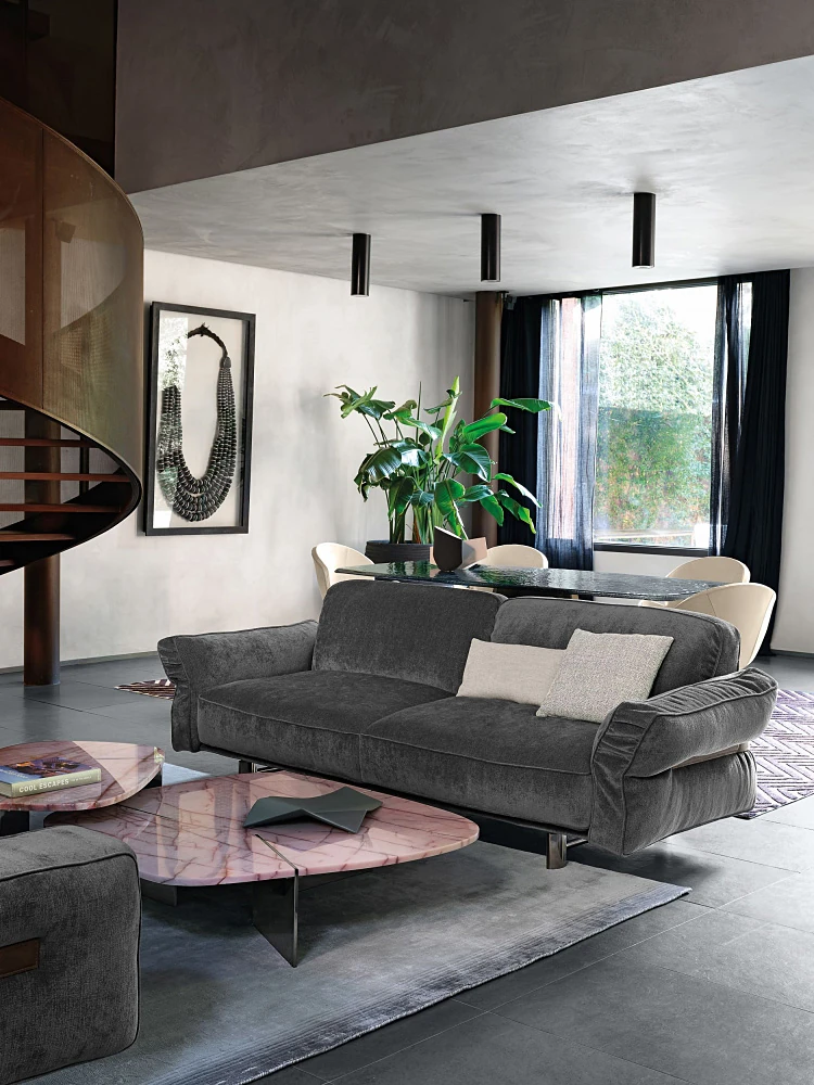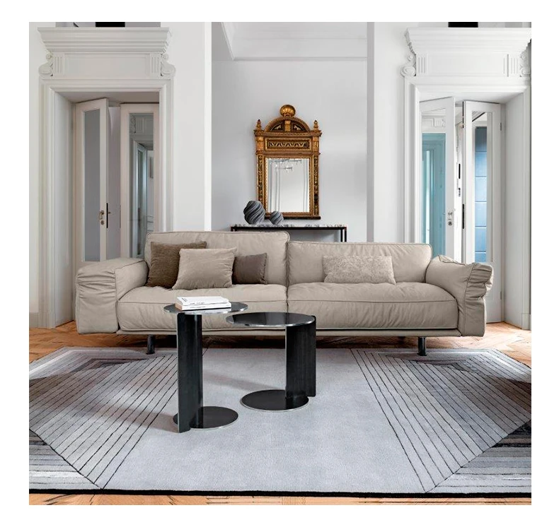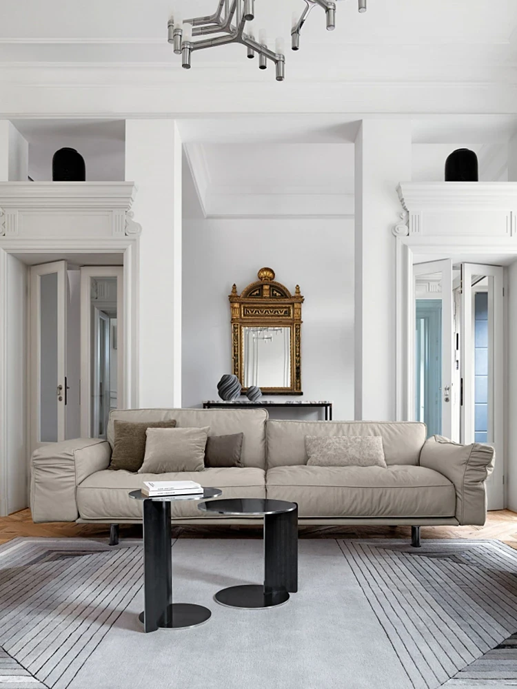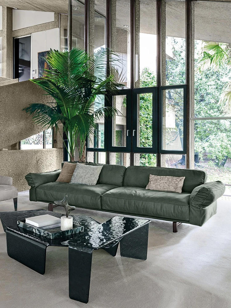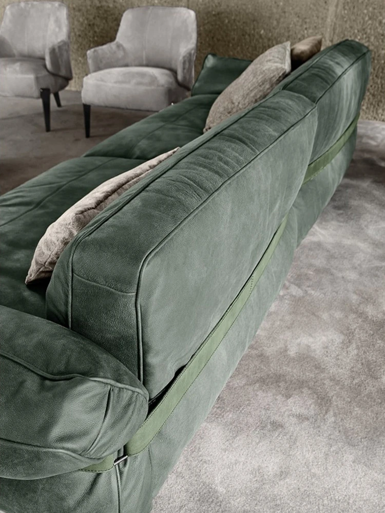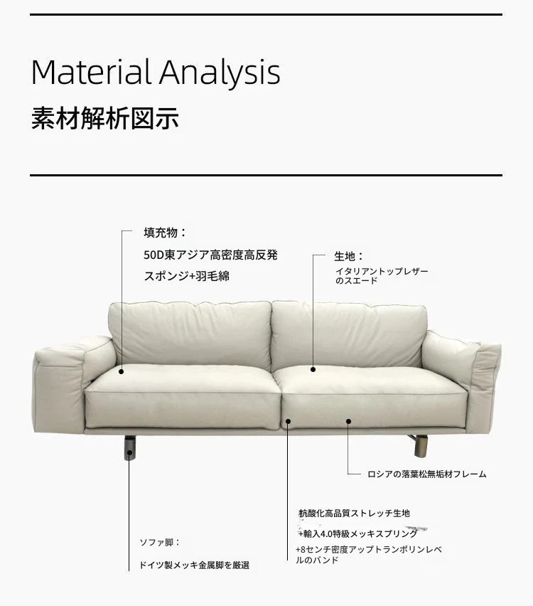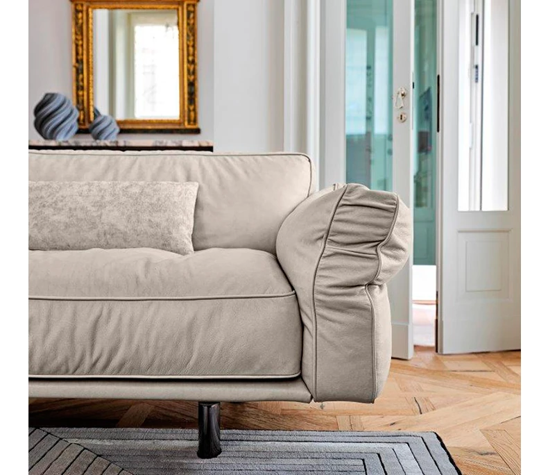 クローザー デザイナーによる本革ソファ - 小型リビングに最適なマット仕上げのトップグレイン牛革使用、イタリアン・ライトラグジュアリーのミニマリストデザインで、快適な抱擁感を提供します!