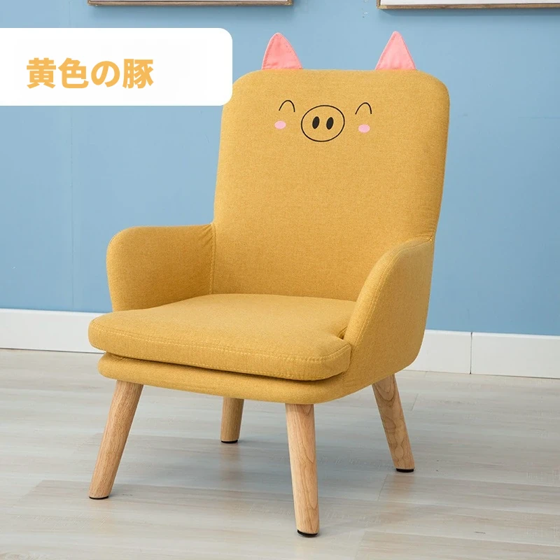 子供用黄色小豚椅子-綿麻 座面高32cm
