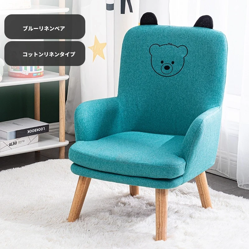 子供用ベージュクマ椅子-綿麻 座面高32cm