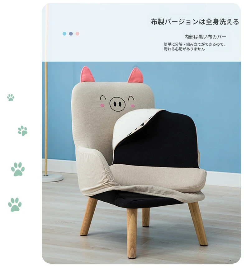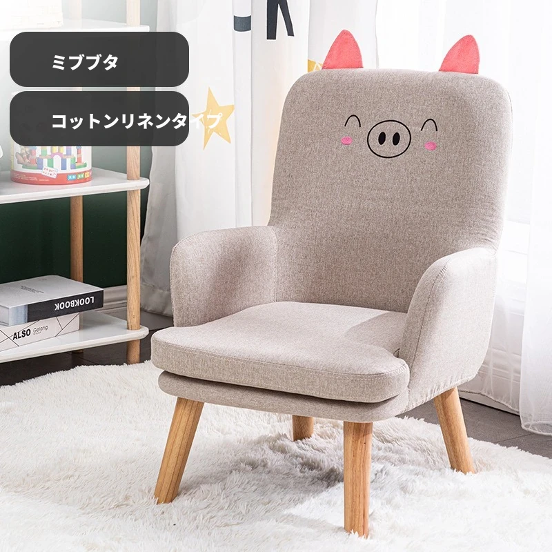 子供用ベージュ小豚椅子-綿麻 座面高32cm