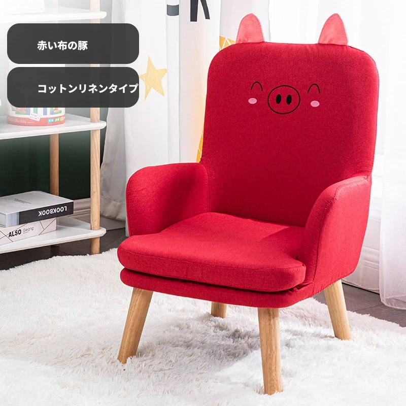 子供用赤色小豚椅子-綿麻 座面高32cm