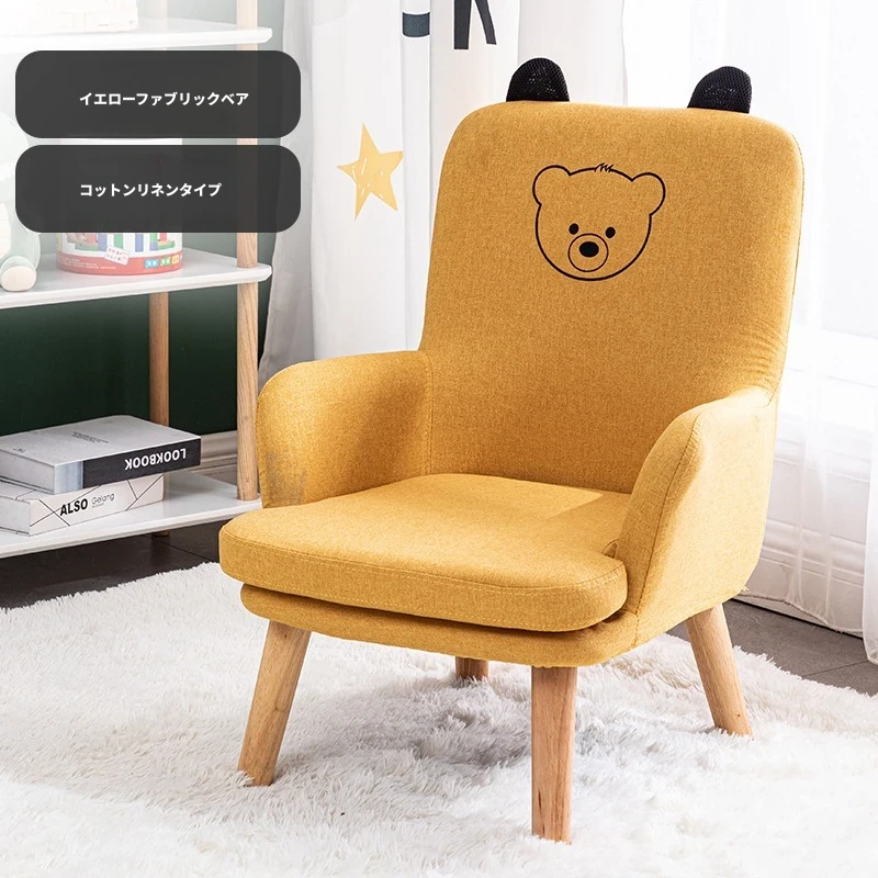 子供用黄色クマ椅子-綿麻 座面高32cm