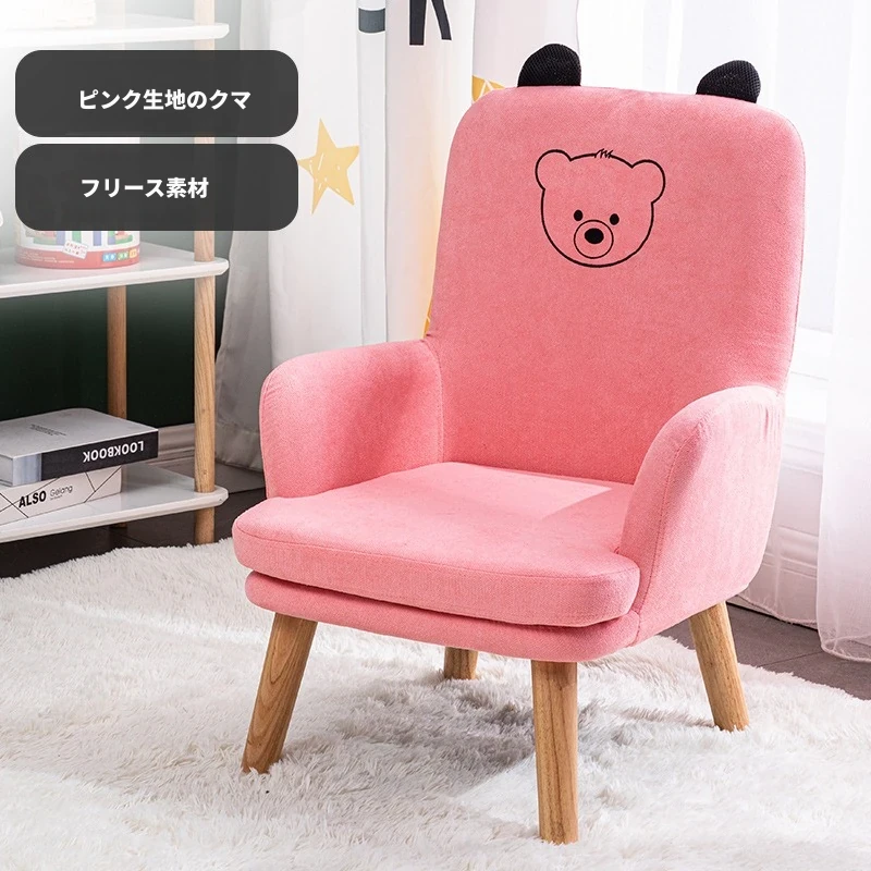 子供用ピンク小熊椅子-綿麻 座面高32cm