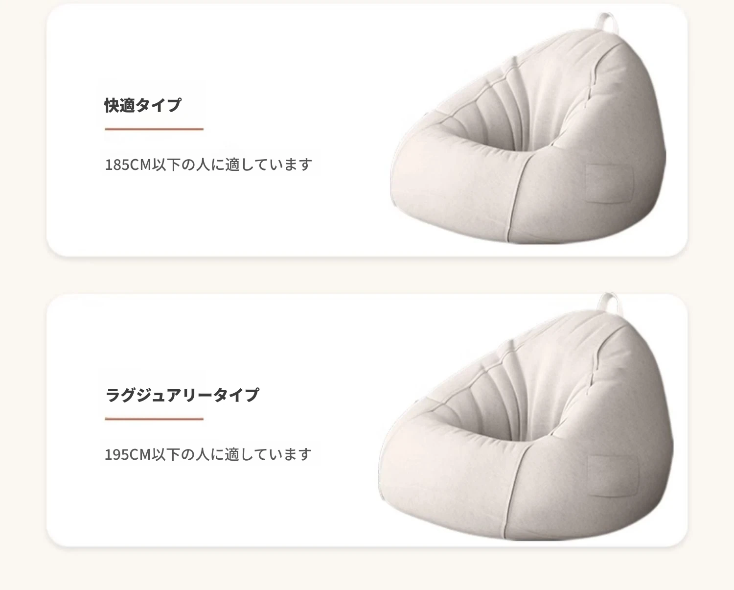 ★スタンダードモデル100*120cm★ベージュ【クッションとフットレスト付き】