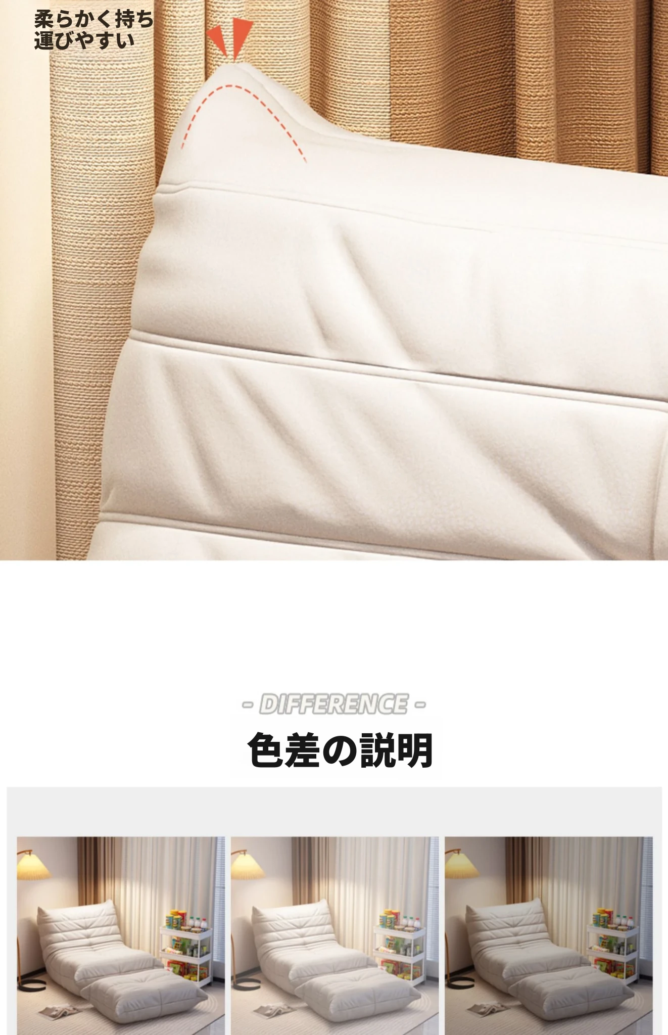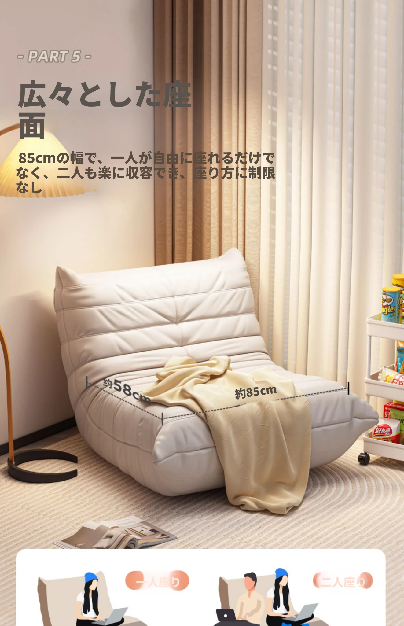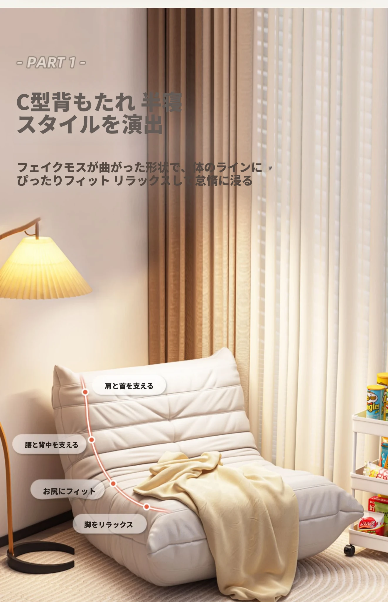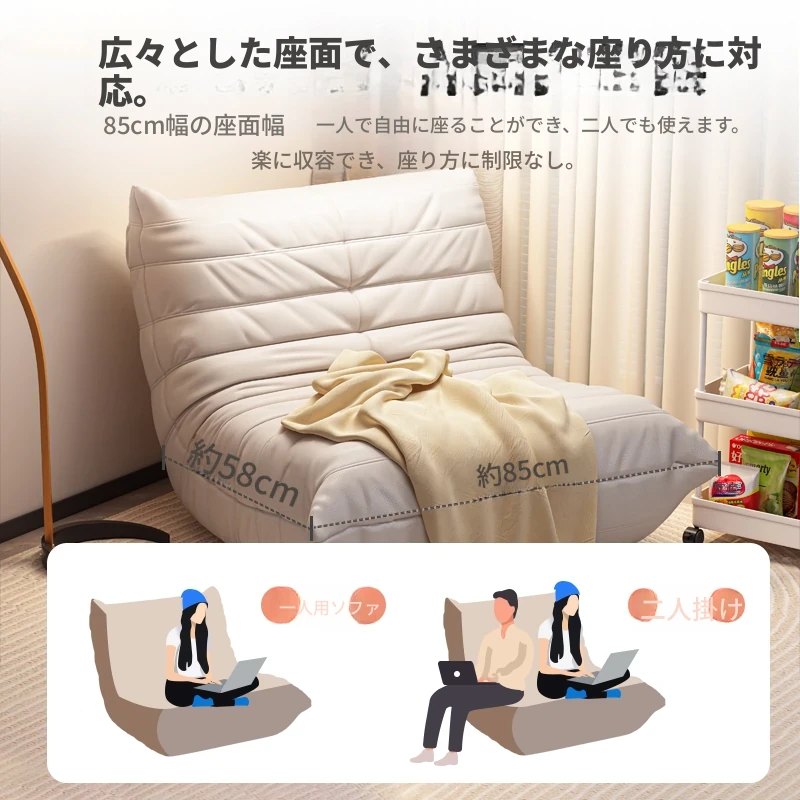 ふわふわの毛虫ソファー|バルコニーや寝室に最適なリクライニング一人掛け椅子|長時間座っても快適|畳にもぴったりなラウンジソファ|寝転んだり、くつろいだりできる万能アイテム!