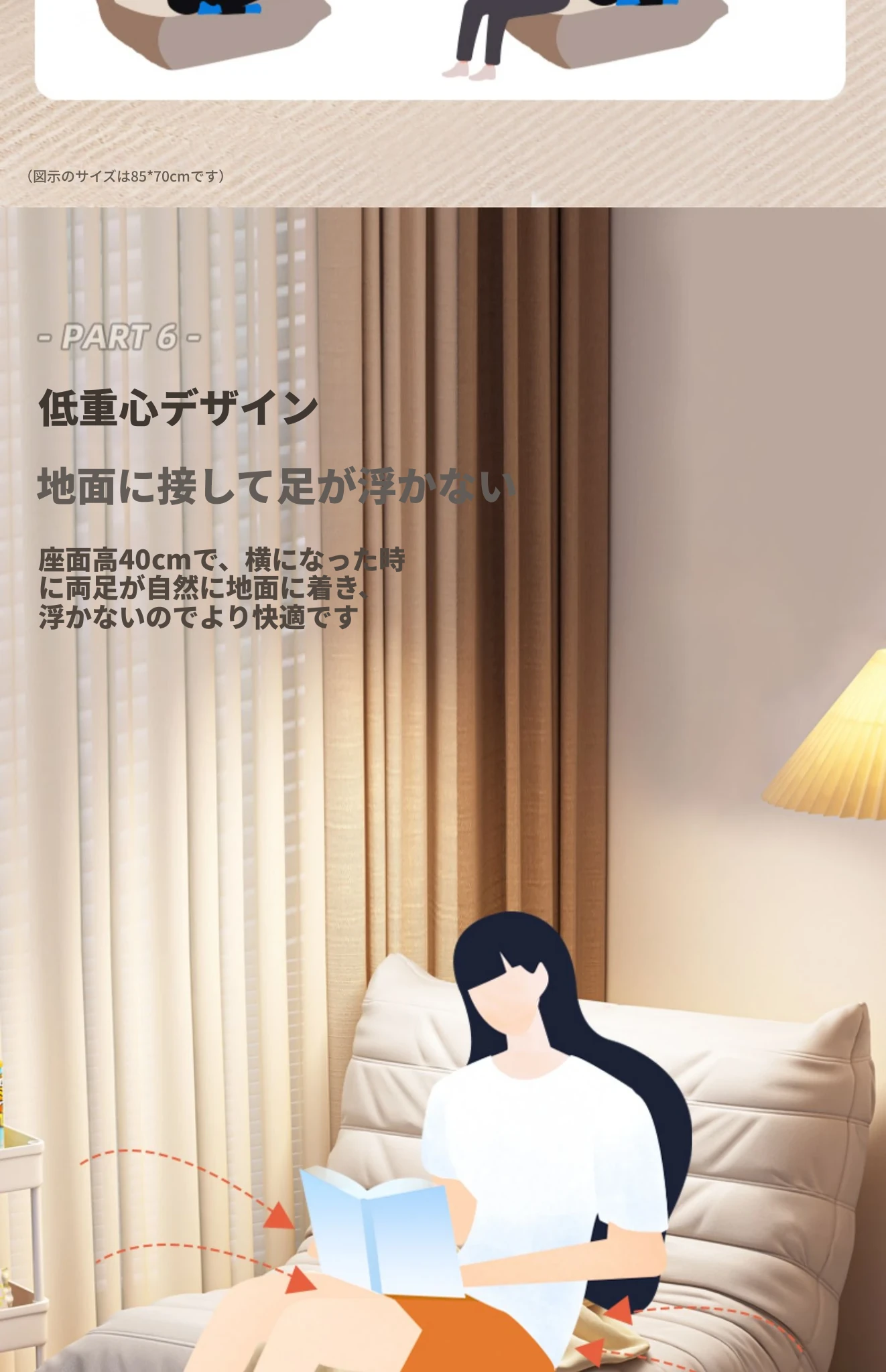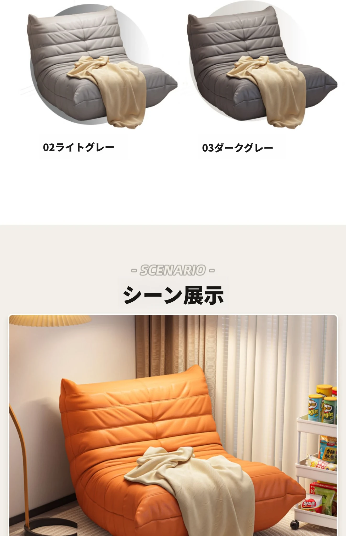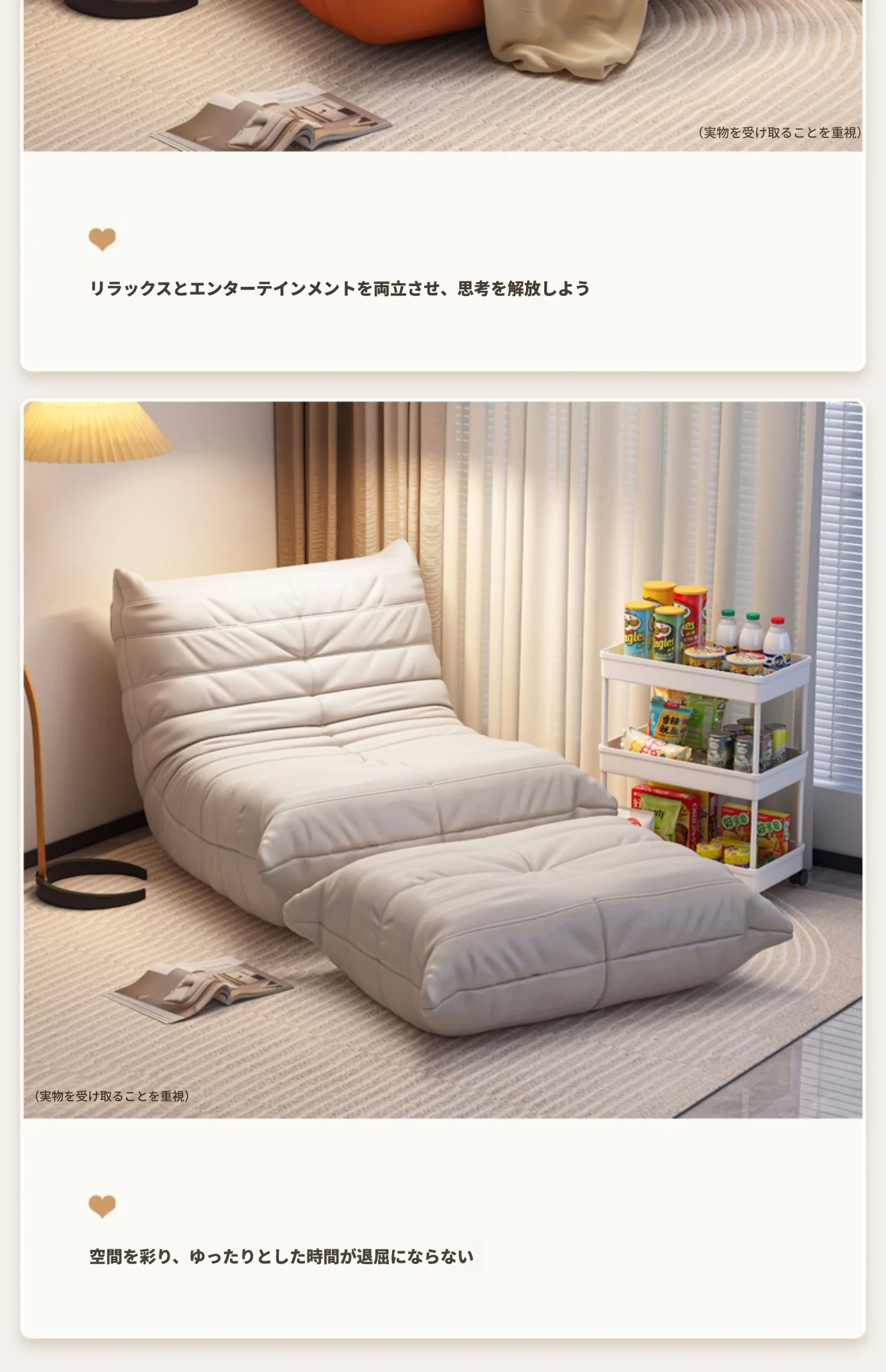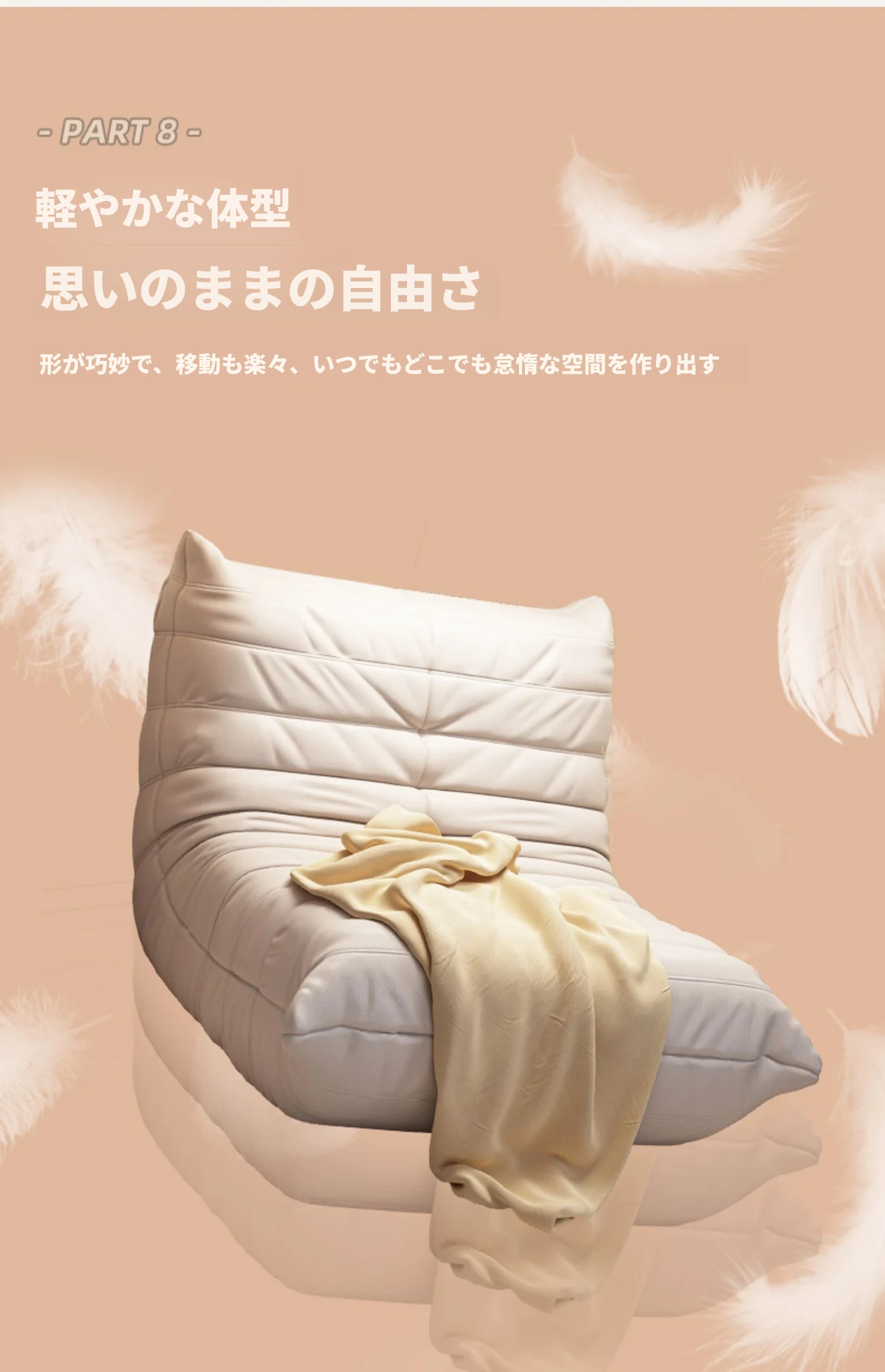 ふわふわの毛虫ソファー|バルコニーや寝室に最適なリクライニング一人掛け椅子|長時間座っても快適|畳にもぴったりなラウンジソファ|寝転んだり、くつろいだりできる万能アイテム!