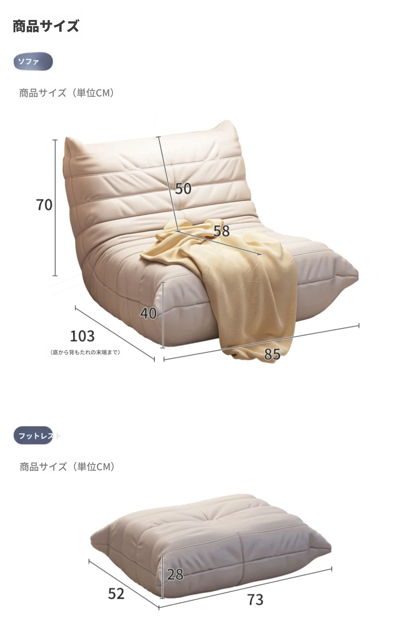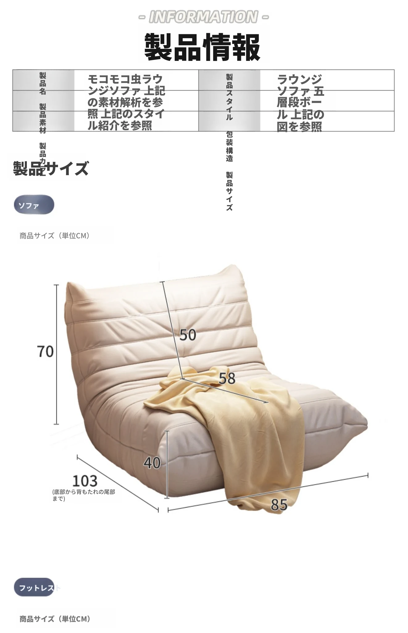 カラー分類&アイボリー色+フットスツール