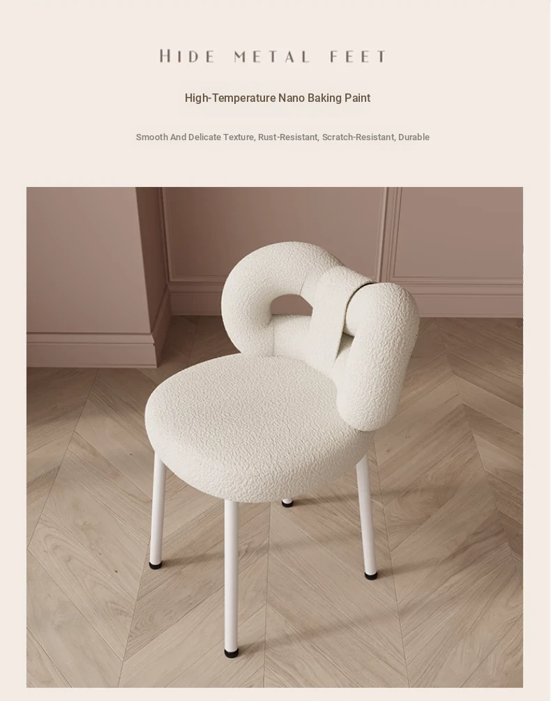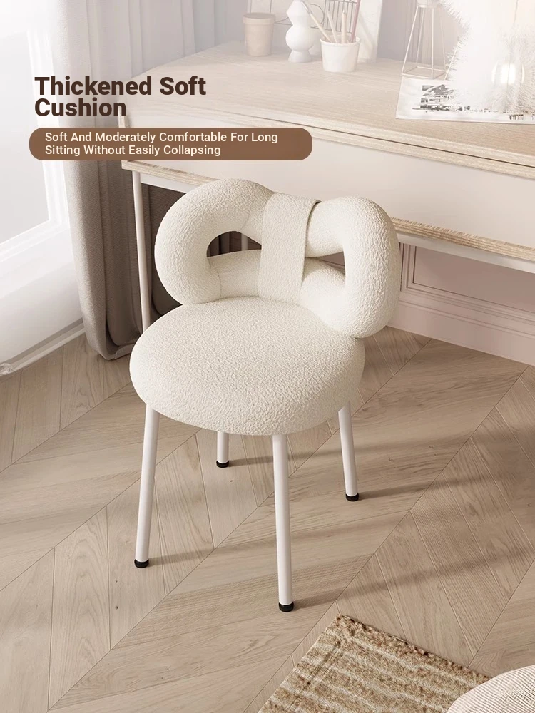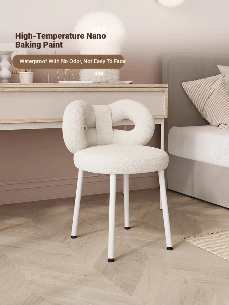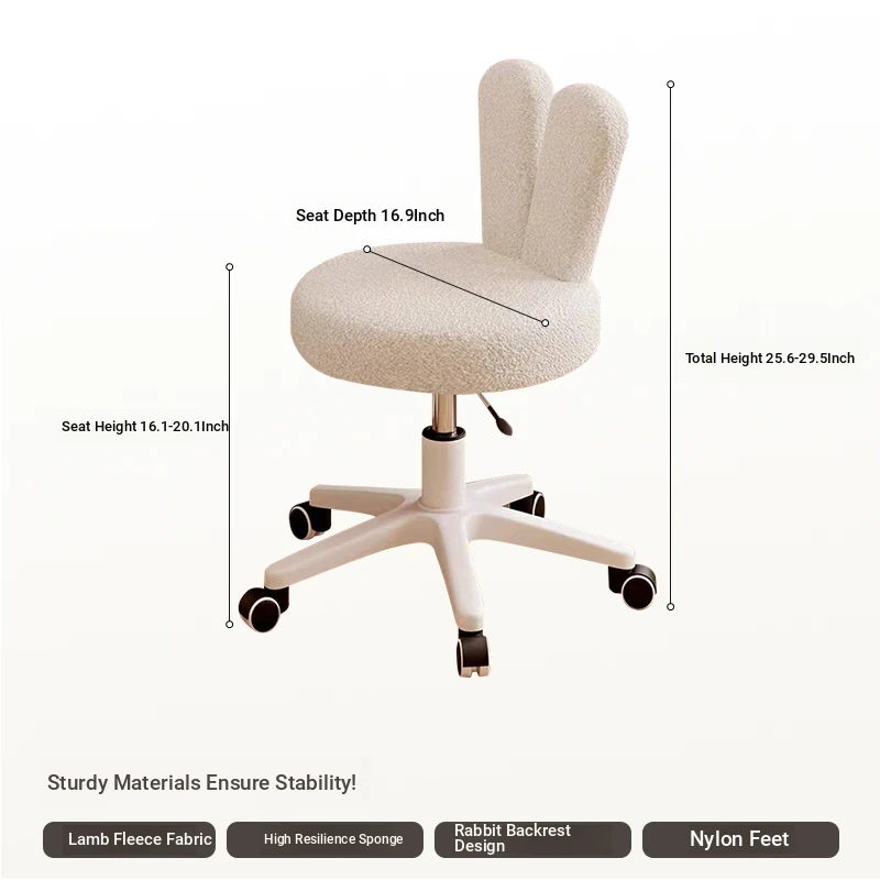 Cozy Cream Lamb Fleece Makeup Chair with Cute Bow - Ideal Bedroom Vanity Stool with Backrest for Home Use