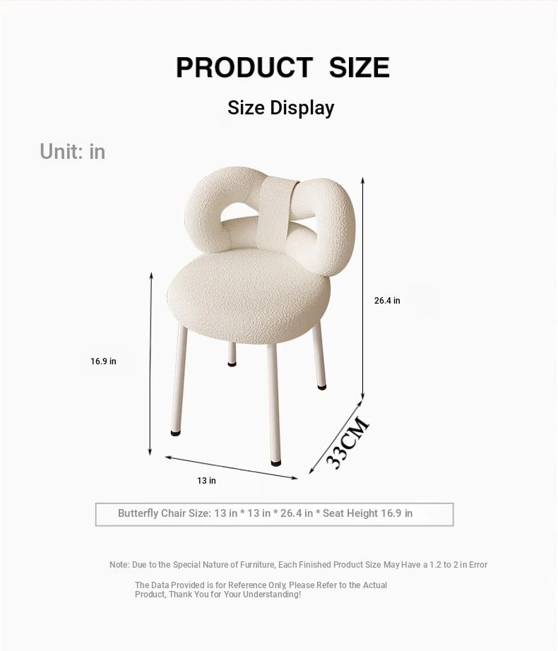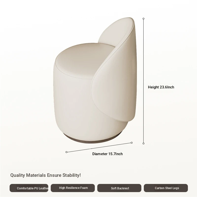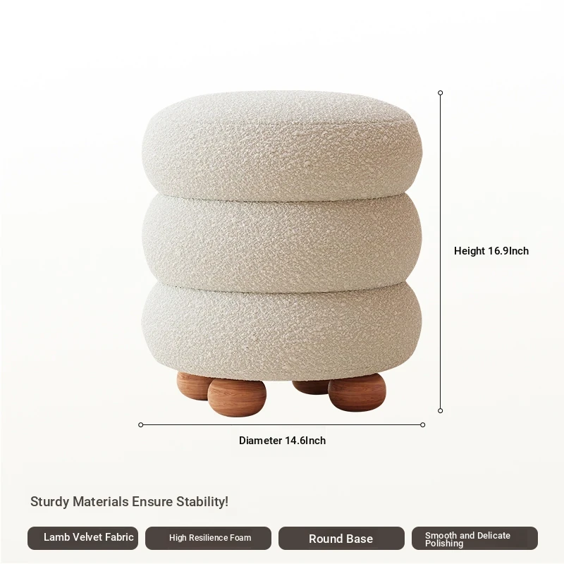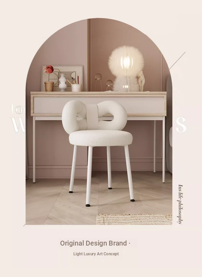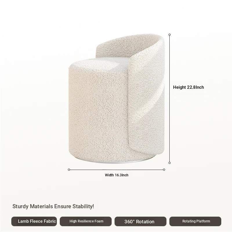 Cozy Cream Lamb Fleece Makeup Chair with Cute Bow - Ideal Bedroom Vanity Stool with Backrest for Home Use