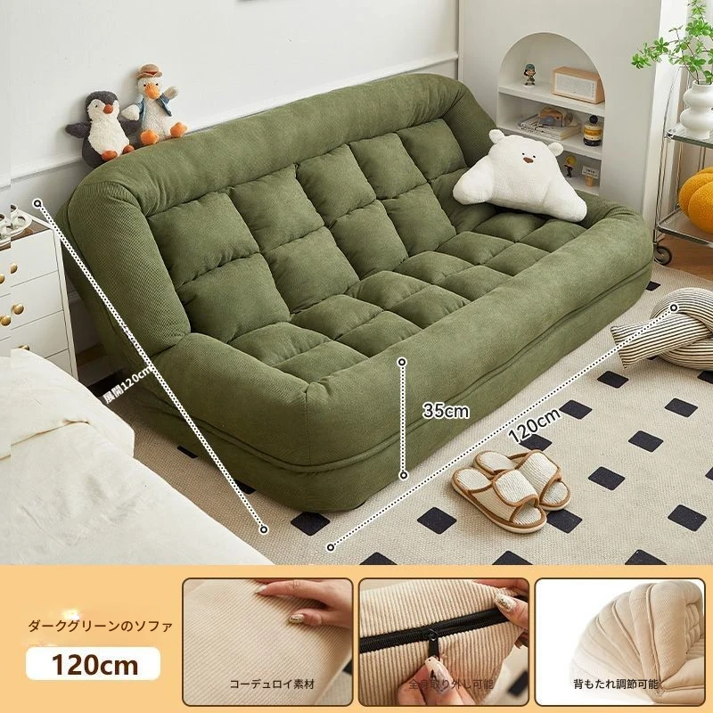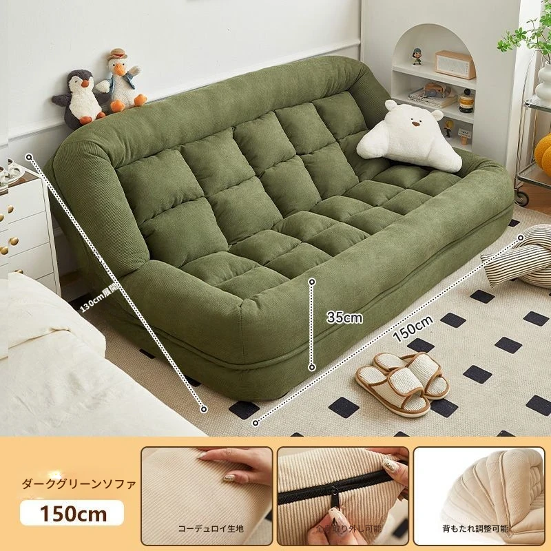 ダブル小ハウス【120*120】ダークグリーン肌触りの良いコーデュロイ【大クッション2個付き】厚手で大きな雲のような座り心地