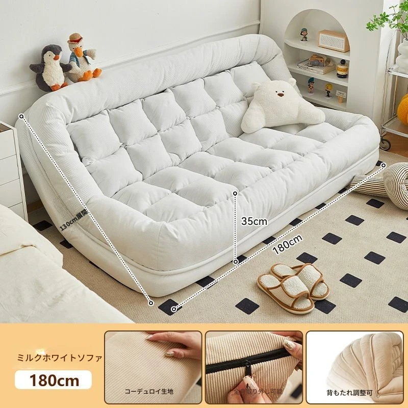 ダブルビッグハウス【180*130】アイボリー肌触りの良いコーデュロイ【大クッション2個付き】厚手で大きな雲のような座り心地