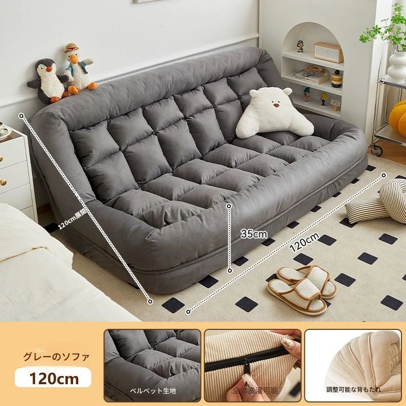 ダブル小ハウス【120*120】グレー肌触りの良いベルベット【大クッション2個付き】厚手で大きな雲のような座り心地