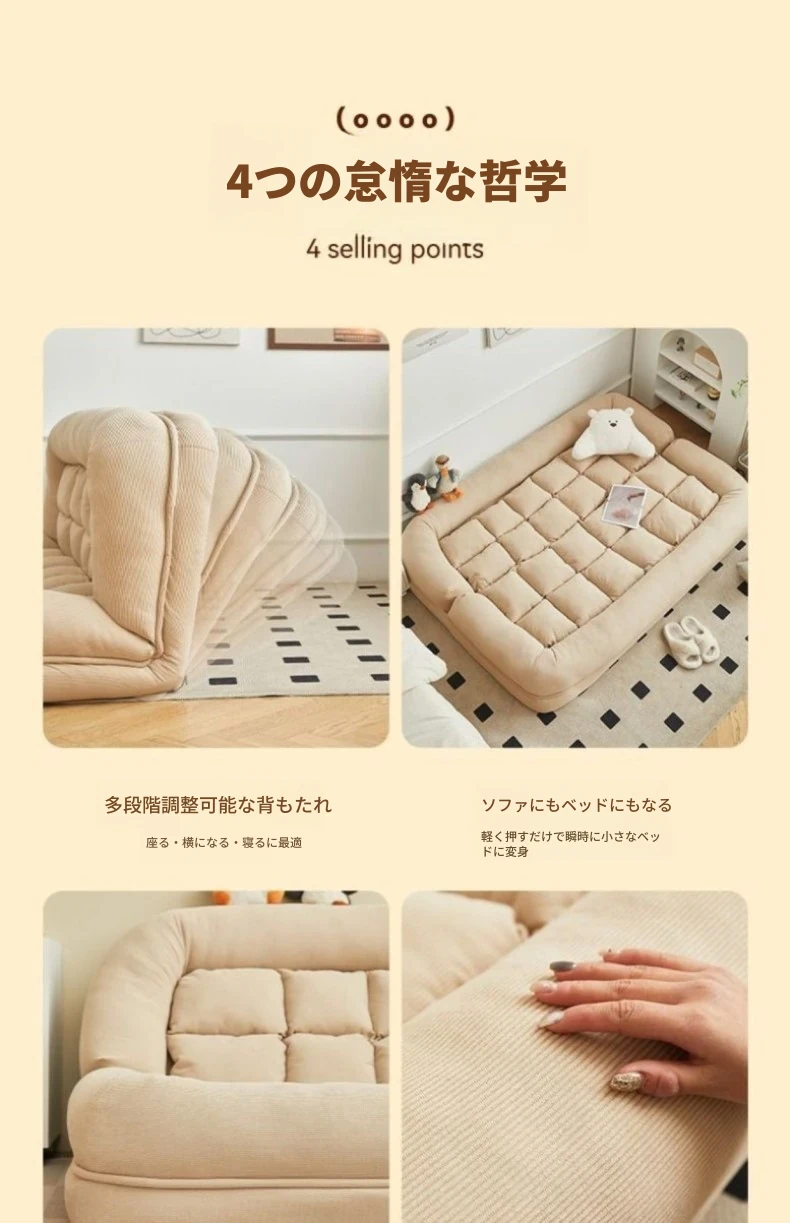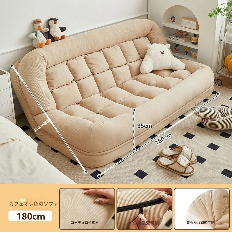 人間用犬小屋スタイルのリラックスソファ!寝転んでも快適、二人用折りたたみソファベッドとしても使用可能。シングルサイズの畳スタイル、巨大で厚い背もたれが魅力です!あなたのくつろぎ空間をアップグレード!