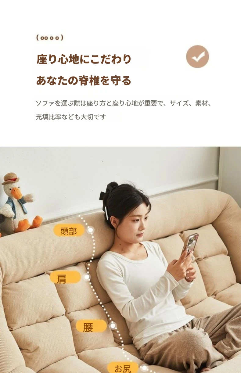 ダブル小ハウス【120*120】ライトブラウン肌触りの良いコーデュロイ【大クッション2個付き】厚手で大きな雲のような座り心地