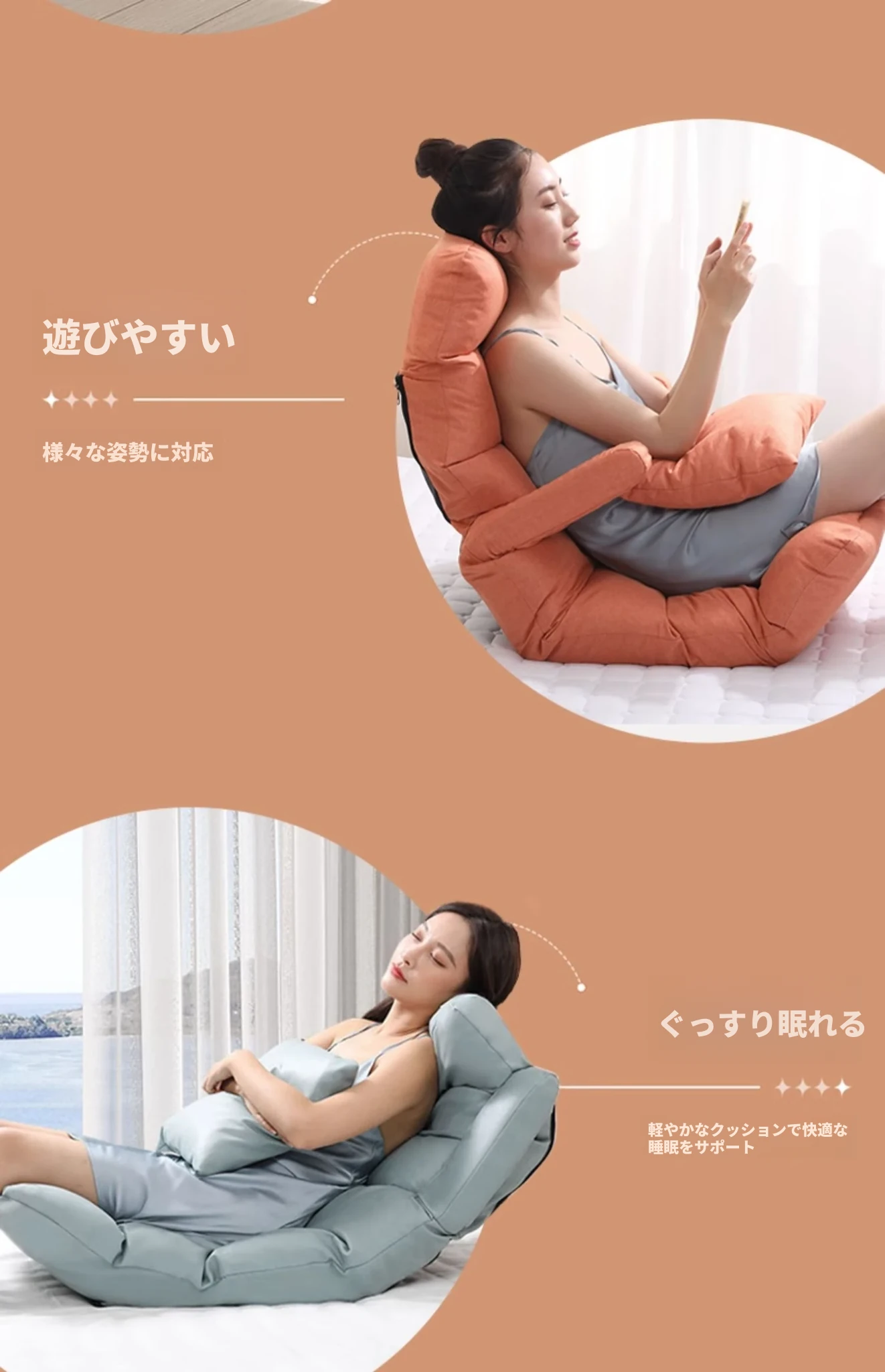リラックスソファー!寝転びもできる折りたたみベッドスタイルの一人掛けチェア。寮や窓際、畳の上でもぴったり!快適な座り心地と使い勝手を兼ね備えたこのアイテムで、心と体を癒しましょう!