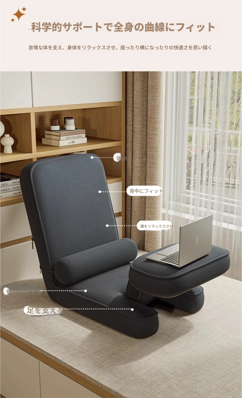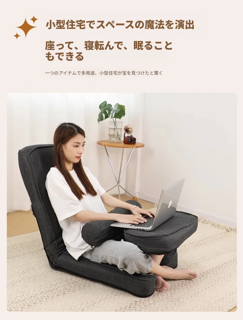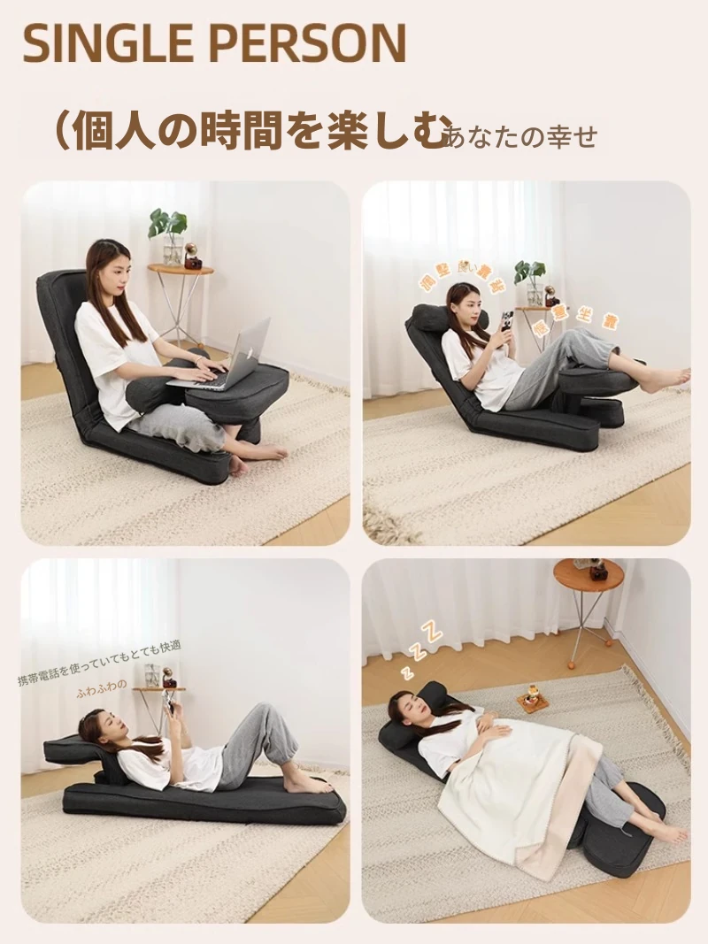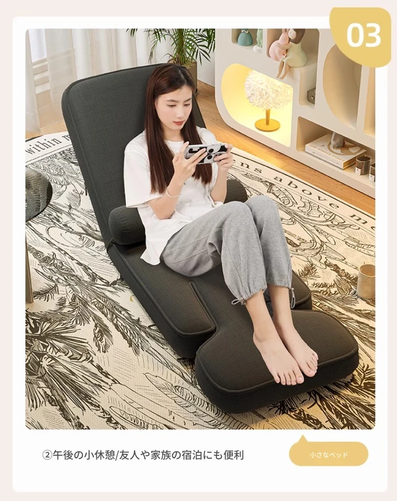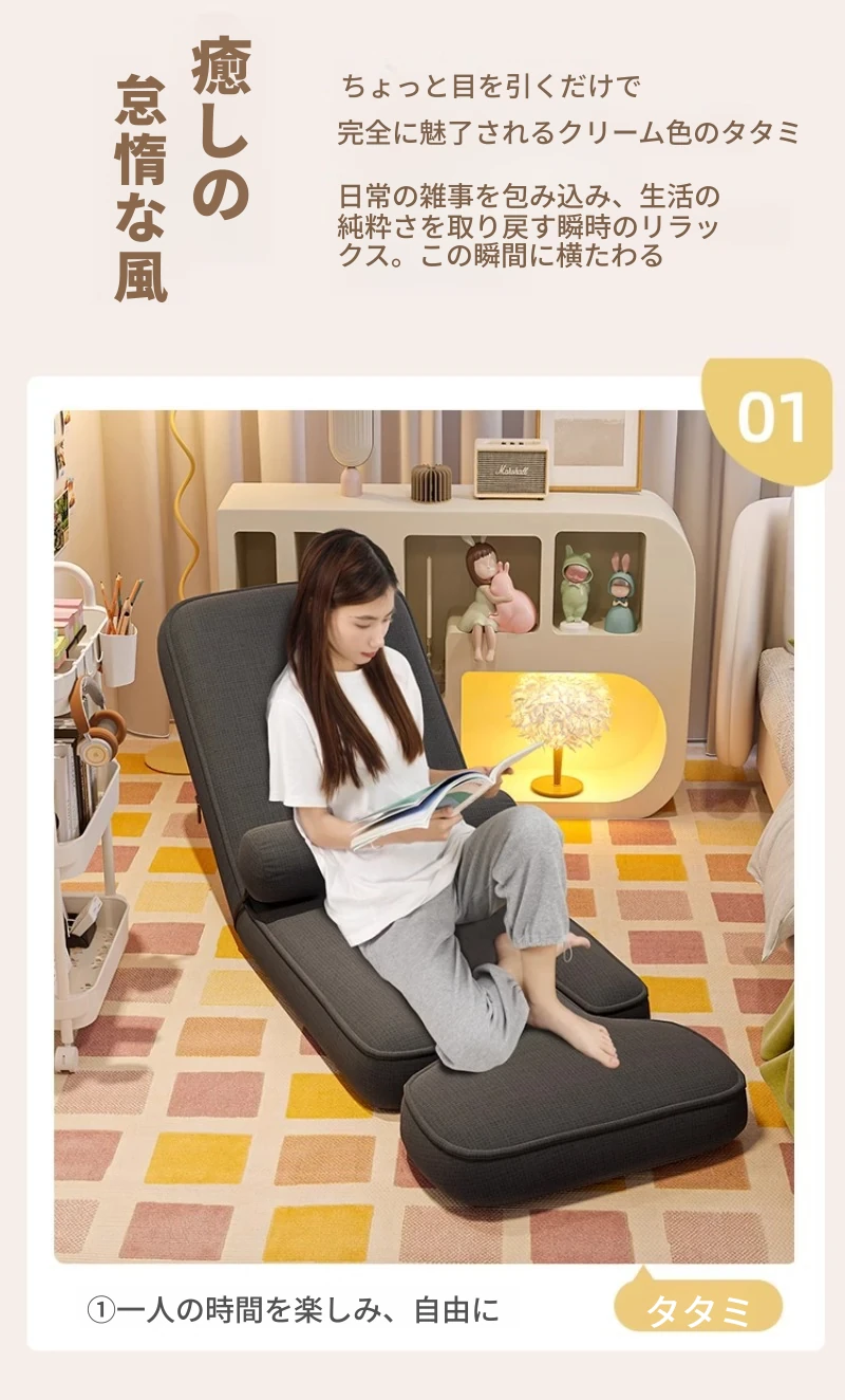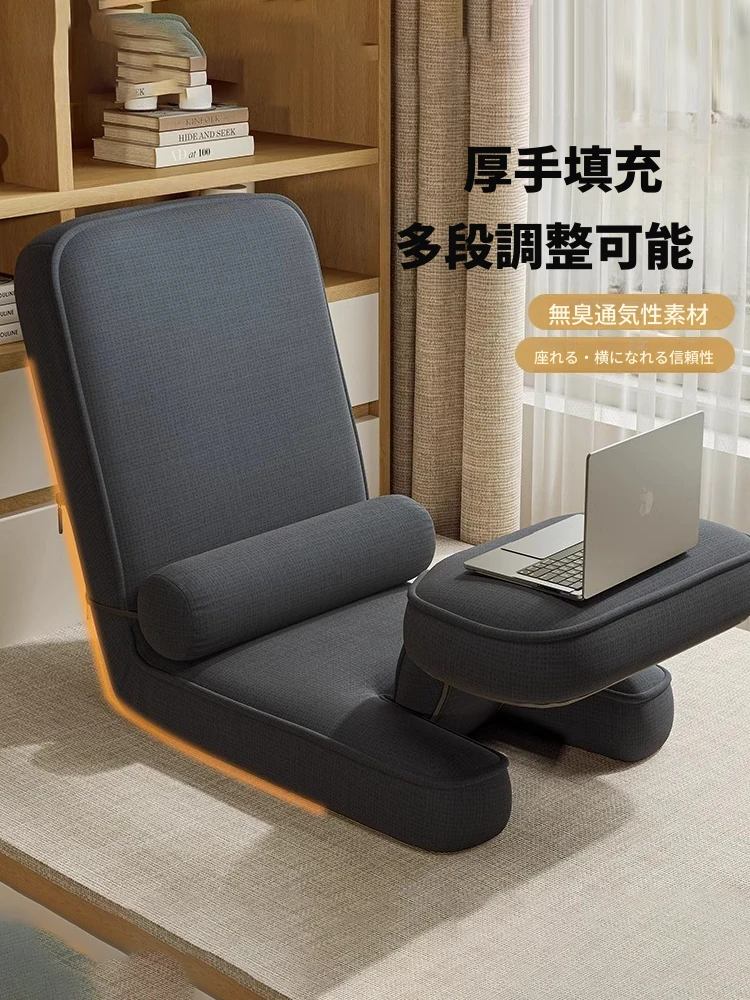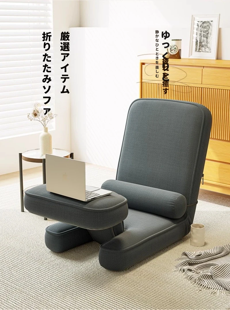 窓辺でのくつろぎに最適!折りたたみ式一人用ソファ、座椅子&デスク一体型の多機能タタミベッド。オフィスやリビングで快適に使える一品です!
