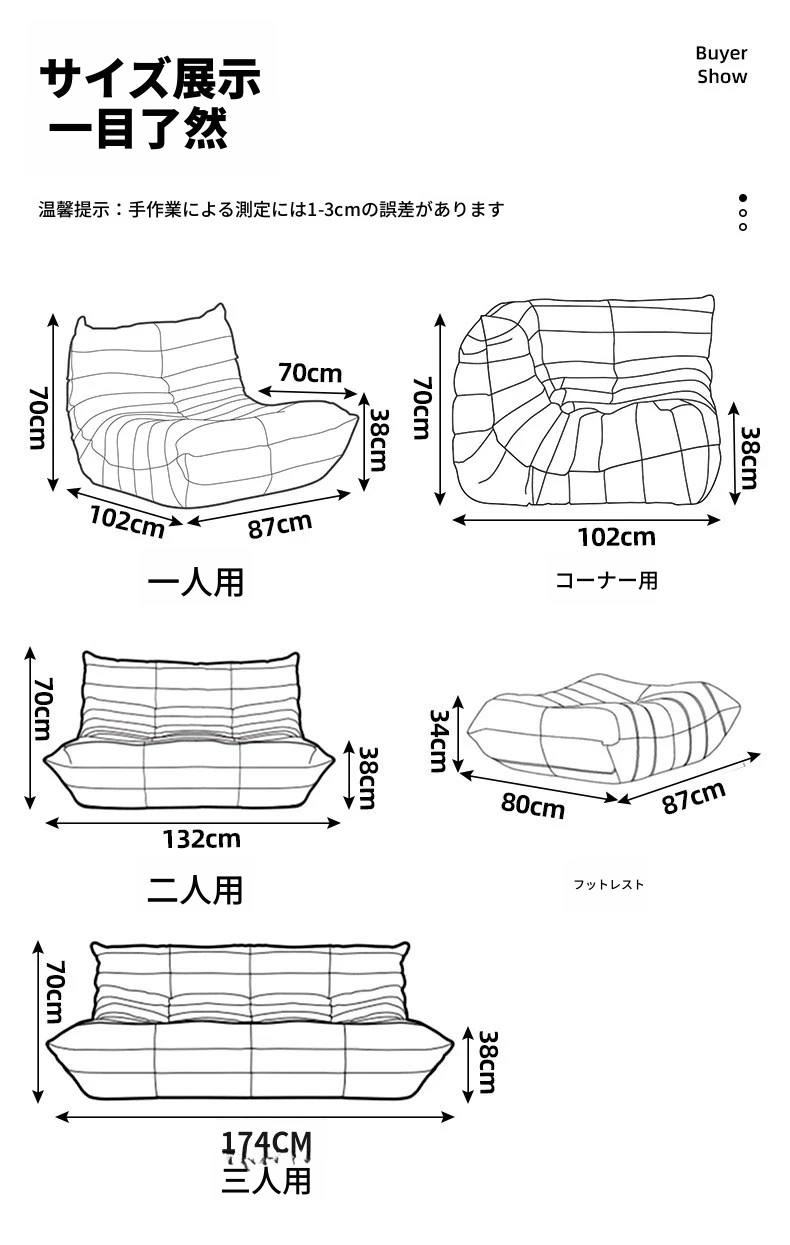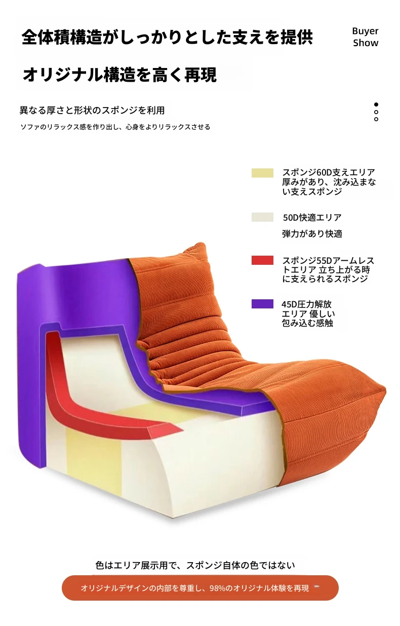 クリーミー風の1人用オリジナルTogoカタツムリソファ - バルコニーやリビングルームに最適!リラックスしながら寝転がれる、快適な怠け者ソファ。おしゃれで心地良い空間を演出します!