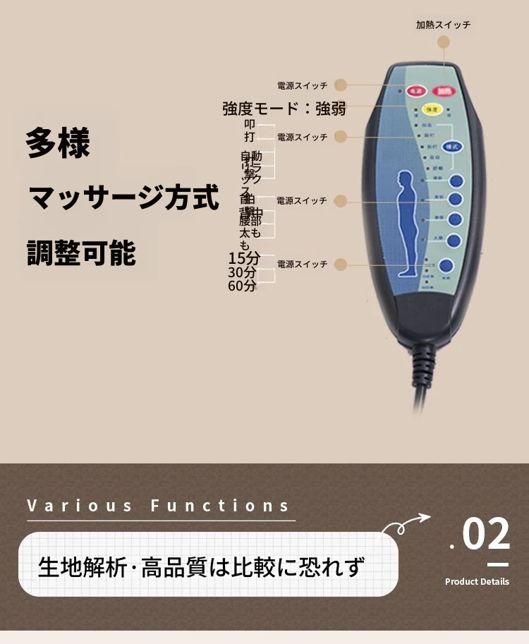 蓄電池付きで座れる・寝られる電動USB自由伸縮回転揺れ加熱マッサージ