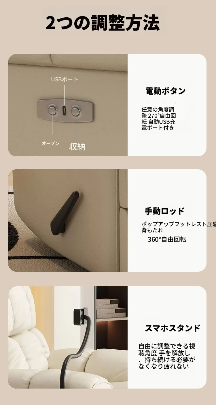 座れる・寝られる電動USB自由伸縮+回転揺れ