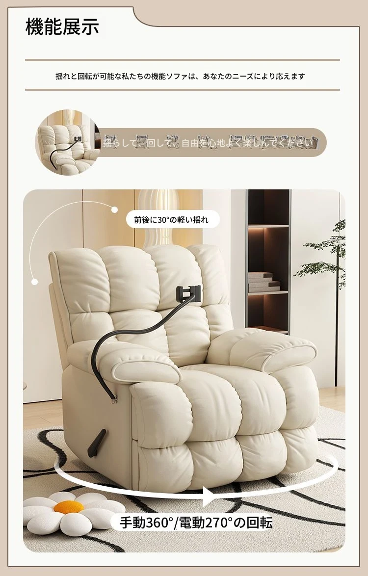 エレガントな宇宙ソファキャビン|多機能リビング用マッサージ電動回転リクライニングチェア|雲のような快適さを提供するシングルロッキングチェアで、リラックスしたひとときをお楽しみください!
