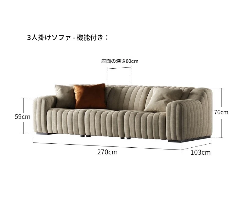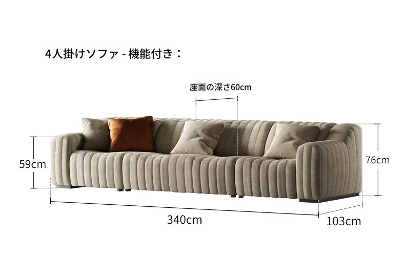 デザイナーソファ イタリアンミニマリズム 大平面リビング用 ストレート布製ソファ 3〜4人用 電動ソファ くつろぎの空間を演出する洗練されたデザイン!