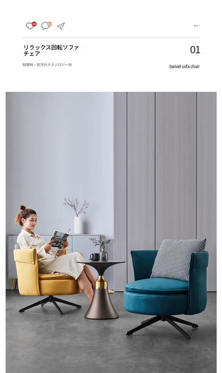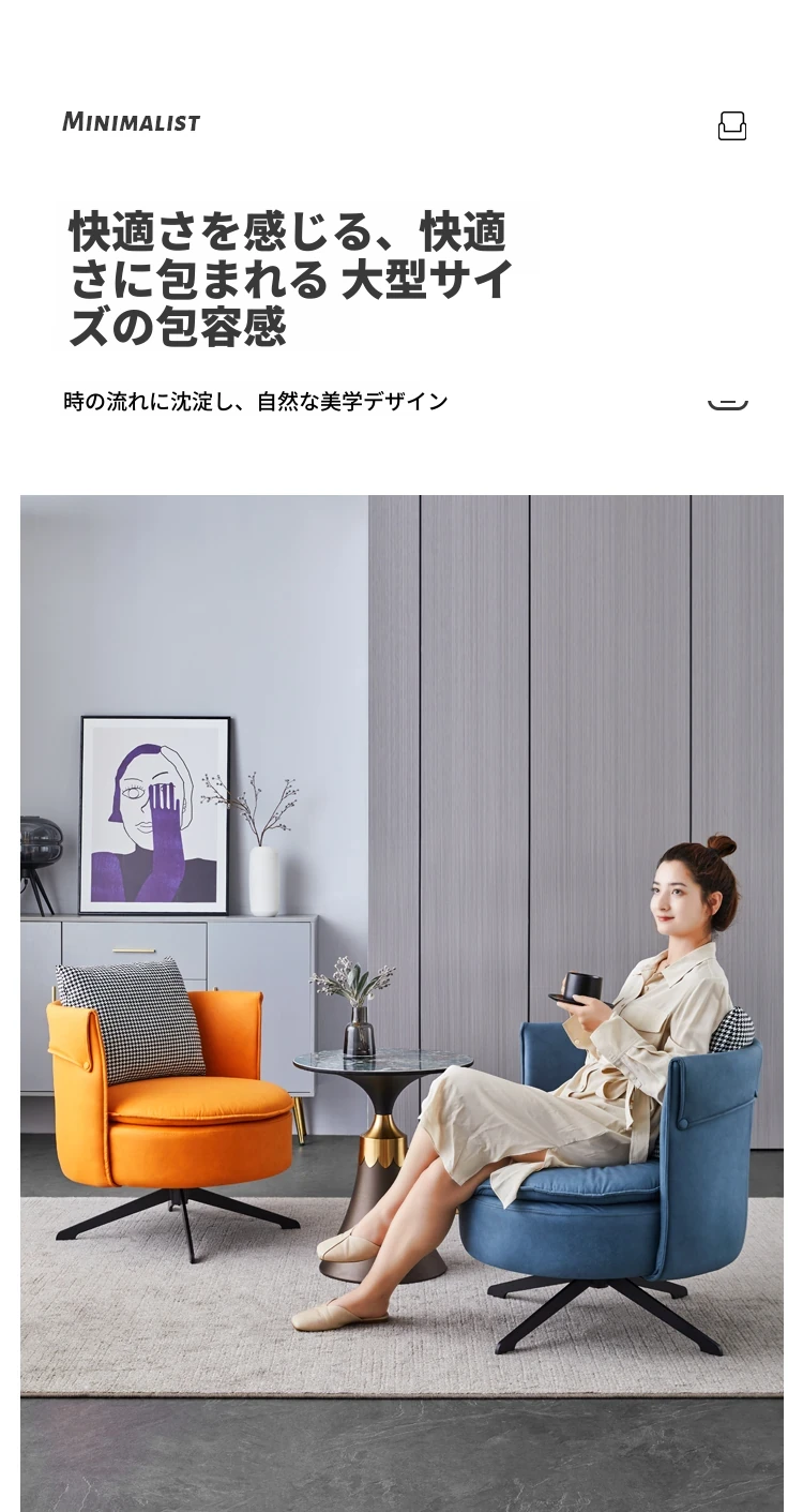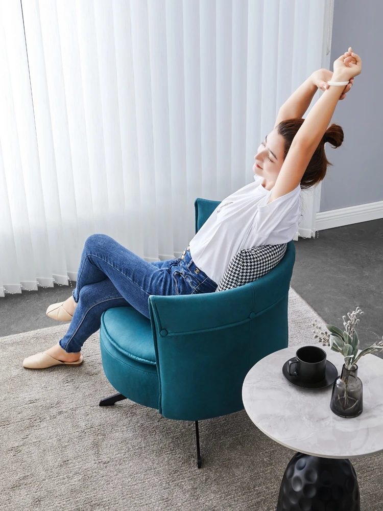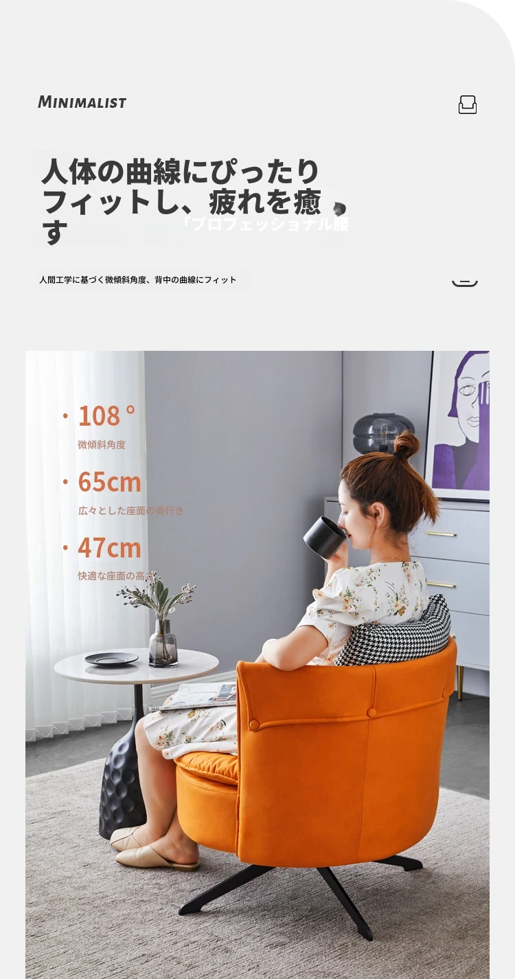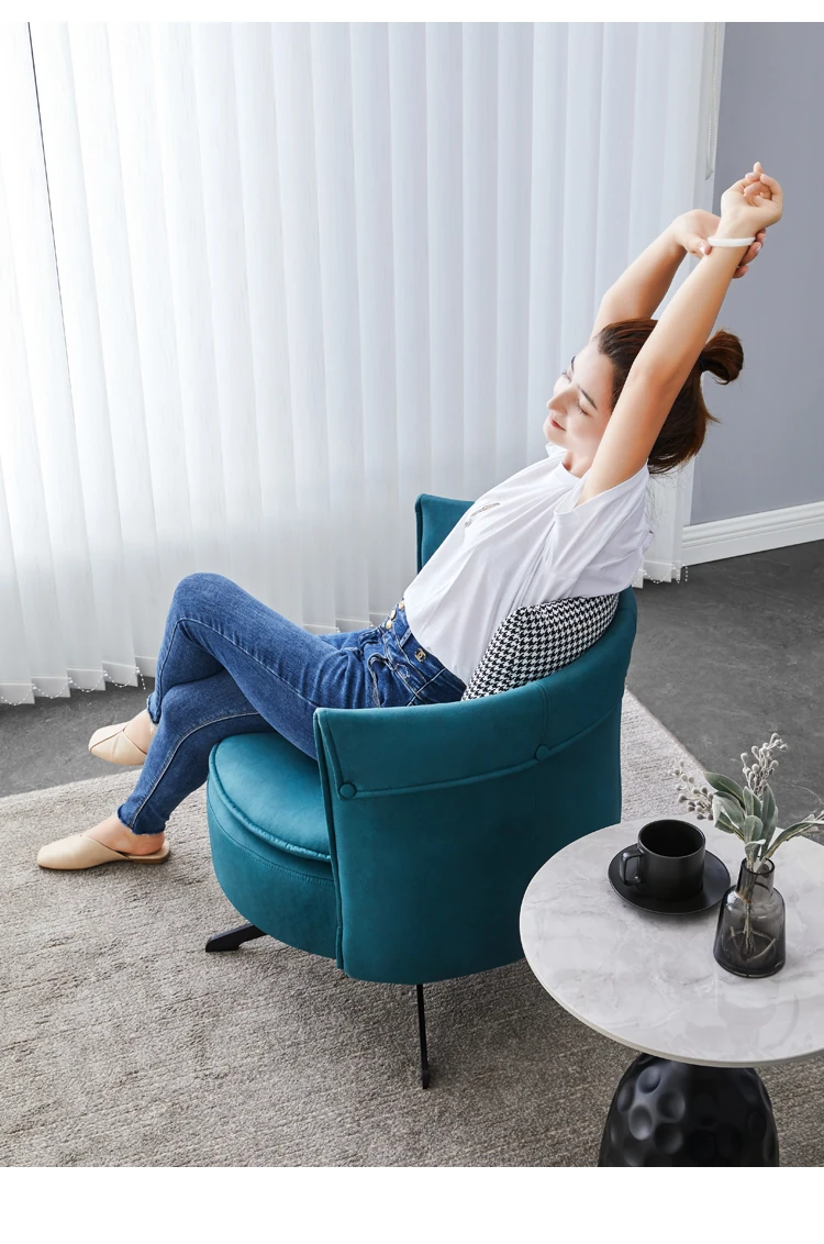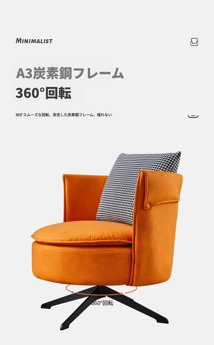デザイナーによるイタリアンスタイルの軽やかなラグジュアリー一人掛けソファ。北欧風の回転可能なデザインで、リビング、バルコニー、寝室に最適なリラックスソファです。あなたの空間にスタイリッシュさをプラス!