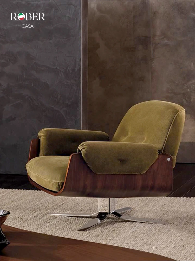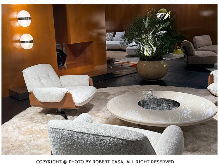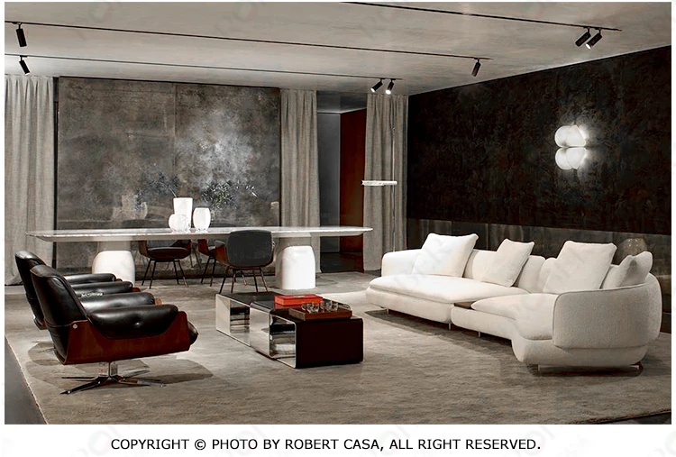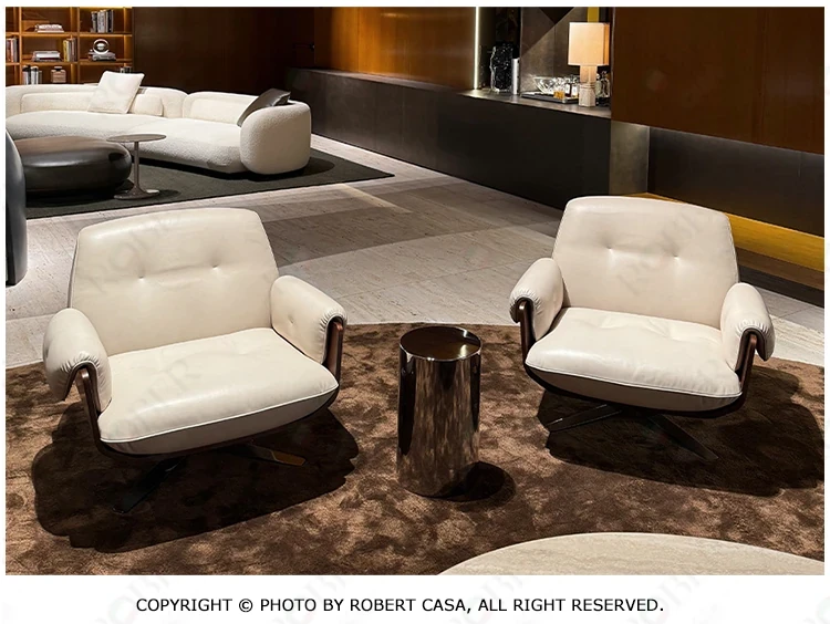 イタリアンミニマリズムのデザイン!新作真皮とファブリックのコンビネーション、リビングルームにぴったりの一人掛けソファ。ヴィンテージな雰囲気を演出し、快適さとスタイルを両立したアイテムです。