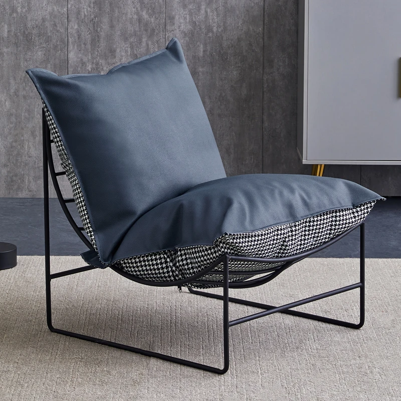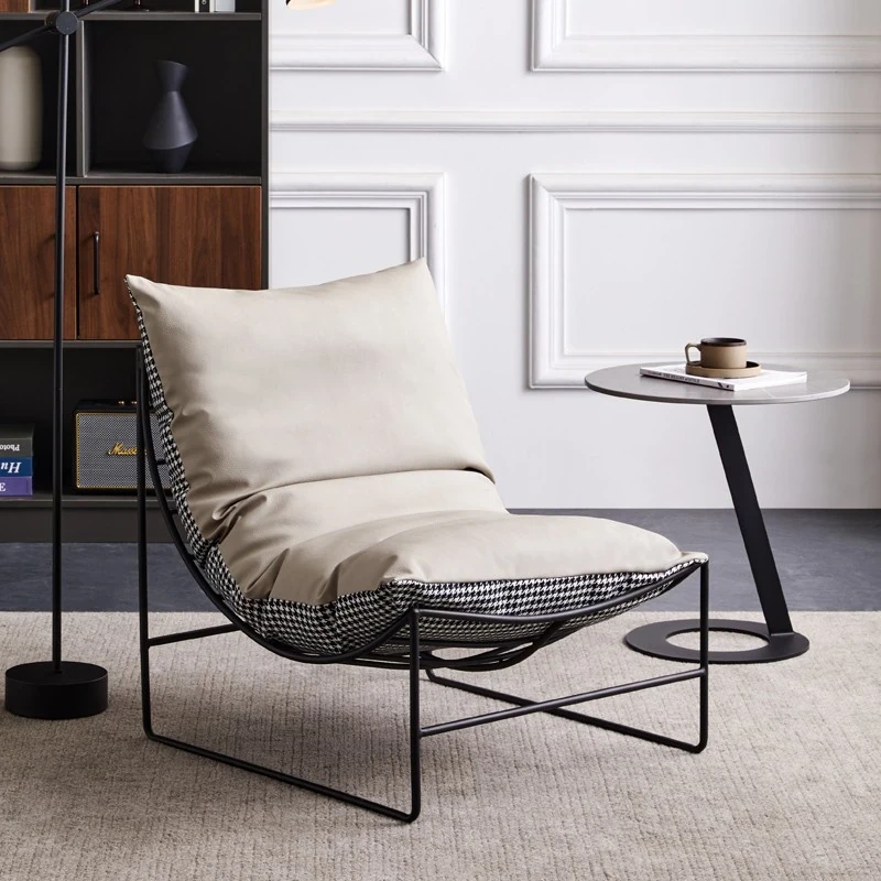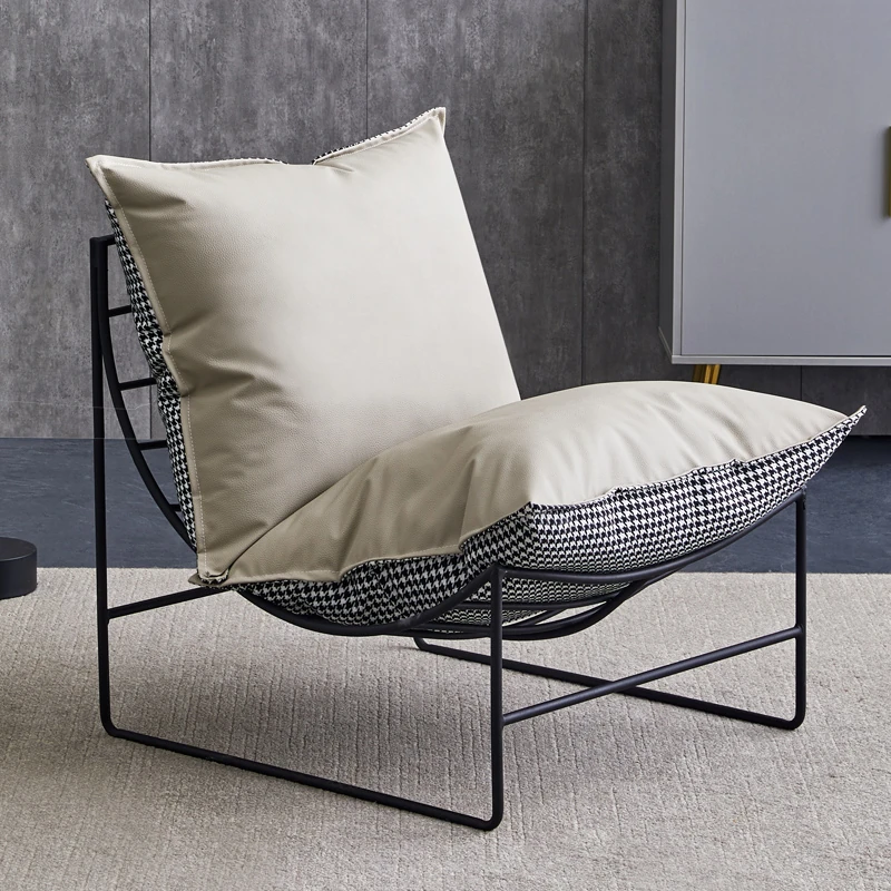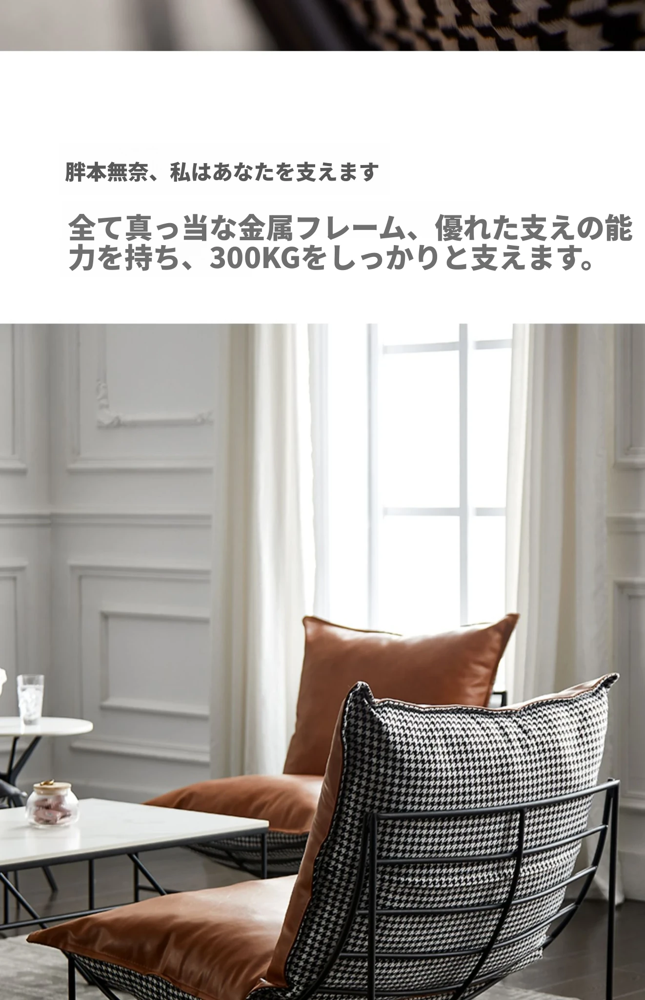 デザイナーズ1人用ソファチェア|北欧風・ラグジュアリー・ミニマルデザイン|インダストリアルスタイルのリラックスチェア|バルコニーにも最適な千鳥格子柄でおしゃれ空間を演出!