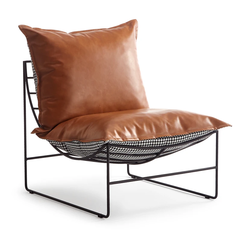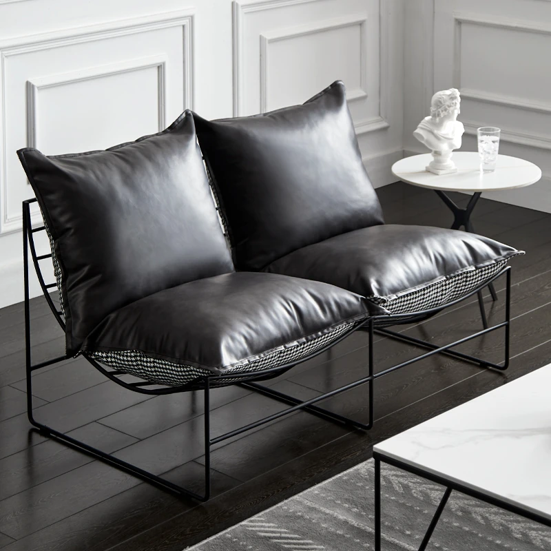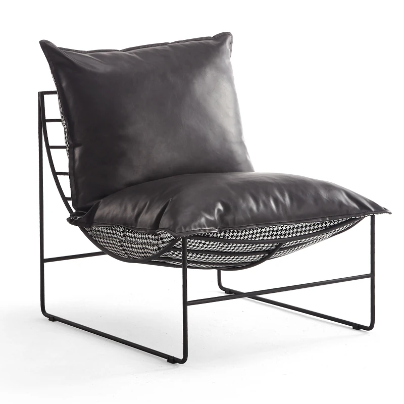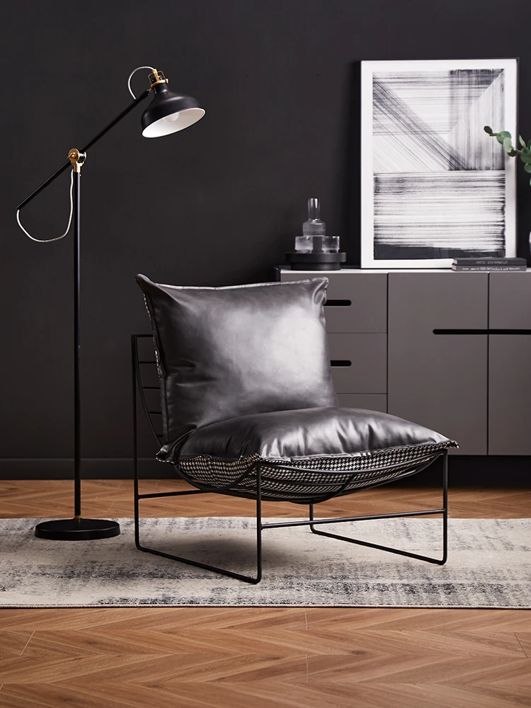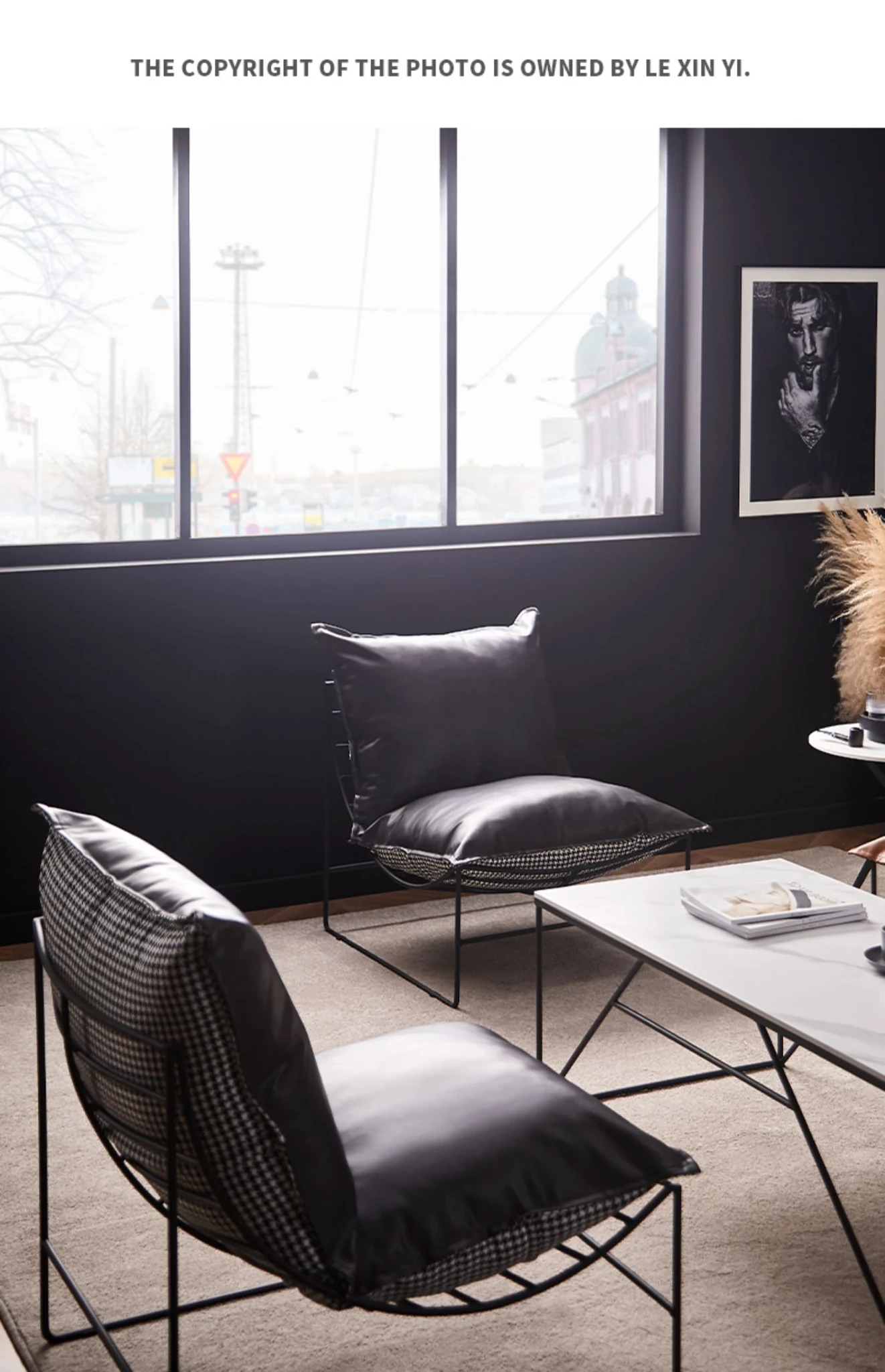 デザイナーズ1人用ソファチェア|北欧風・ラグジュアリー・ミニマルデザイン|インダストリアルスタイルのリラックスチェア|バルコニーにも最適な千鳥格子柄でおしゃれ空間を演出!