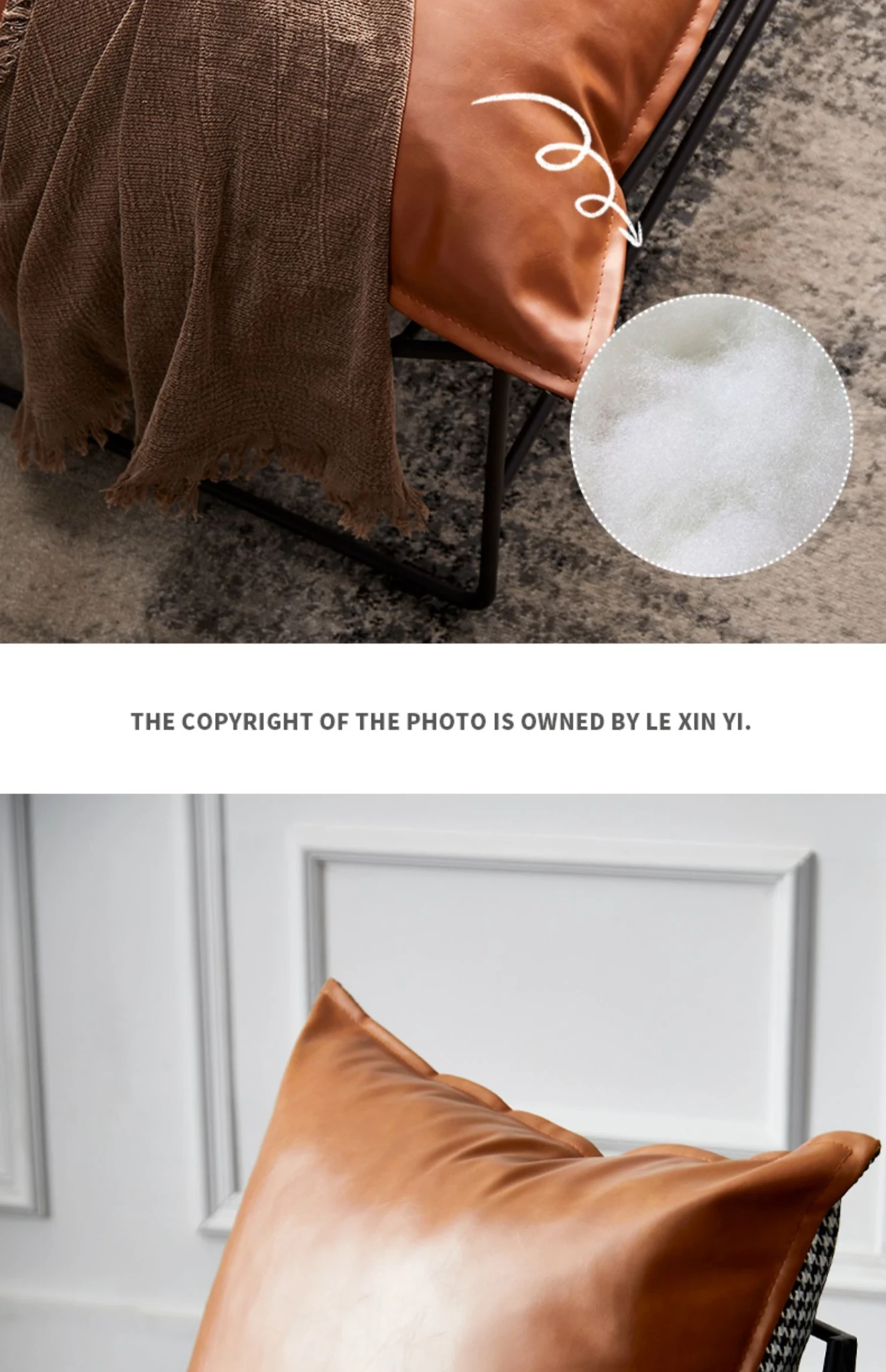 オレンジのレザー+千鳥格子ファブリック-シングル