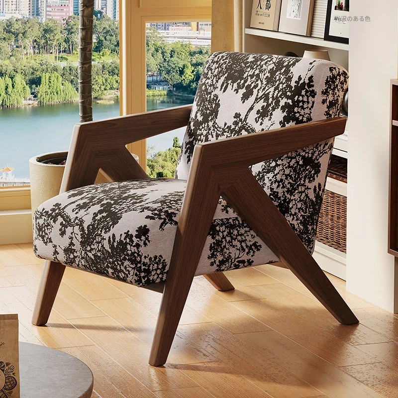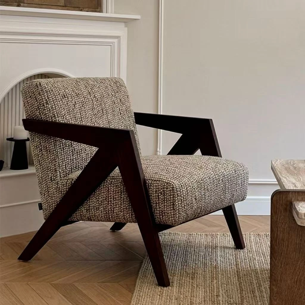 ヴィンテージフレンチスタイルの無垢材リチャードチェア|デザイナー仕様のラウンジソファ|リラックス空間を演出する客リビングやバルコニーに最適な一品!