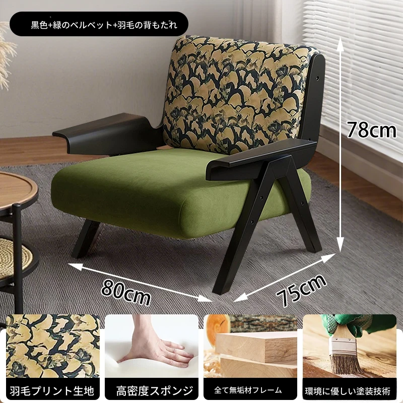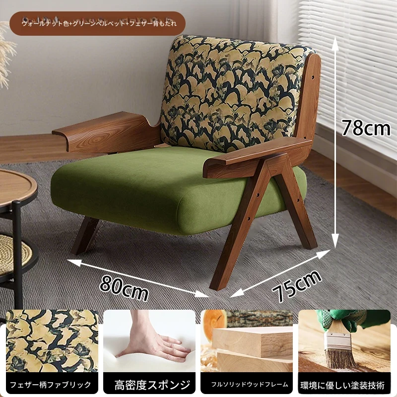 フライングバードアームレストスタイル-ウォールナット グリーンフリース+羽毛スタイル