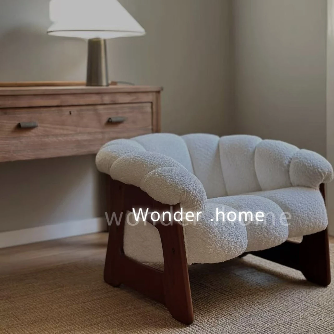 Designer Vintage Single Sofa Chair - Luxury Home Lazy Leisure Chair for Living Room, Wabi-Sabi Style, Solid Wood Reception Chair for Guesthouse