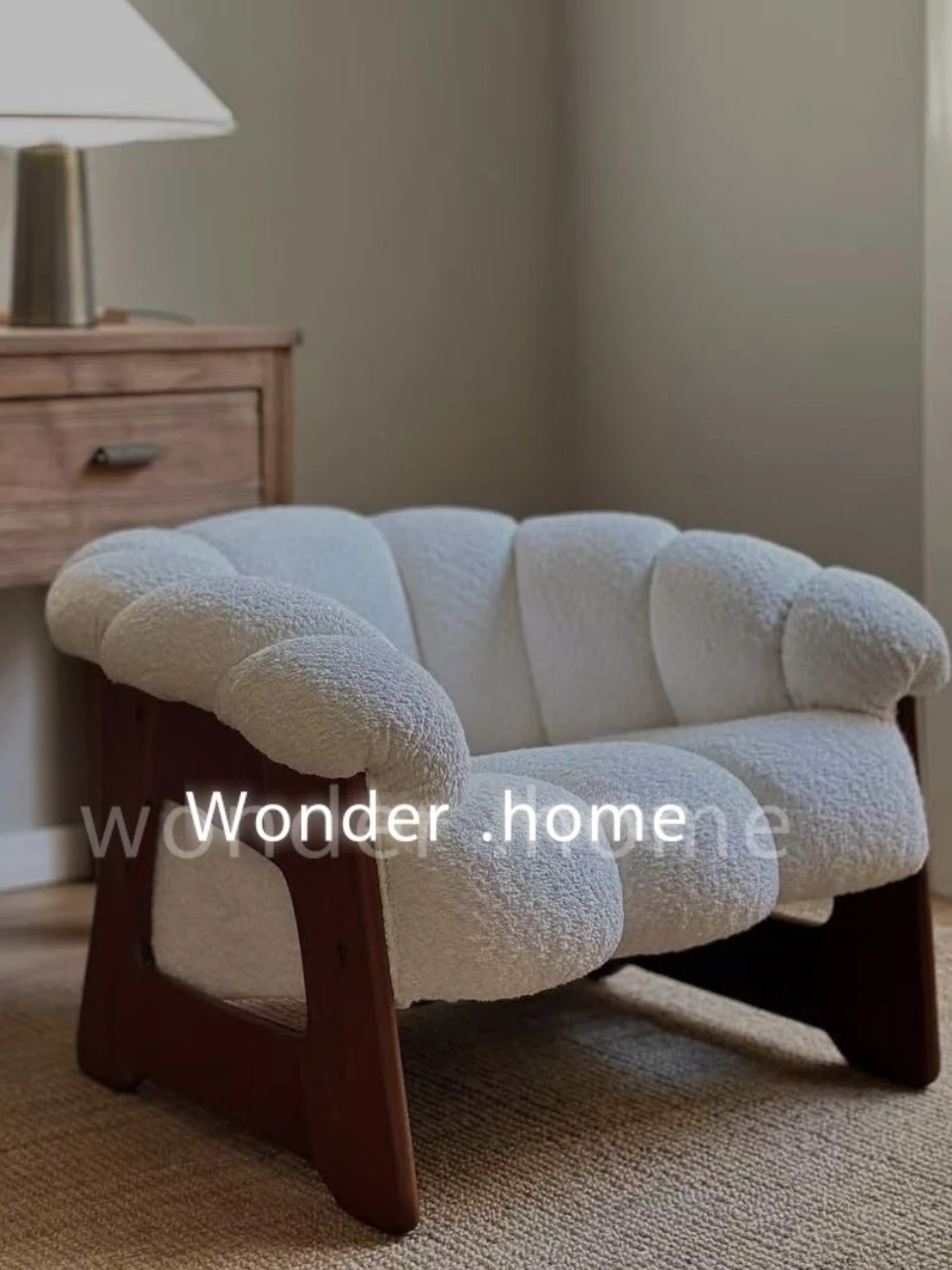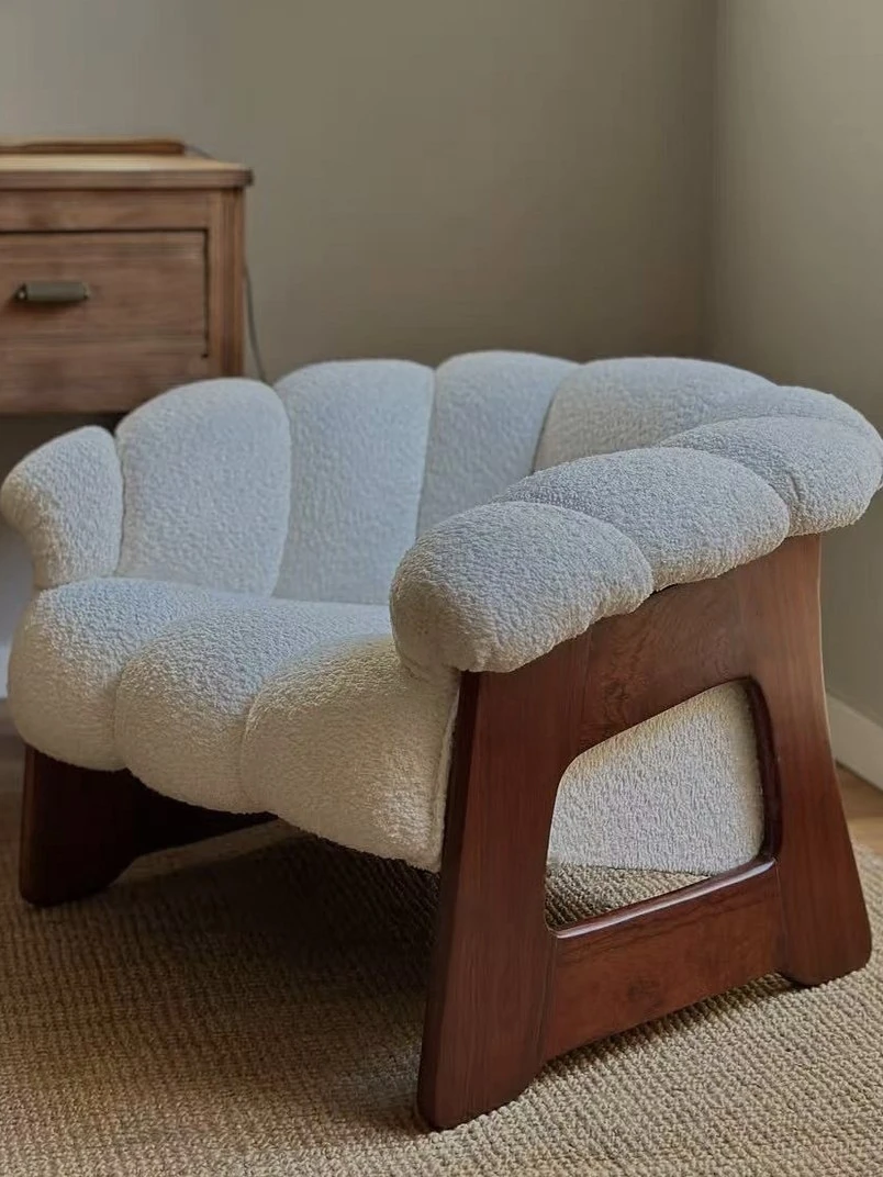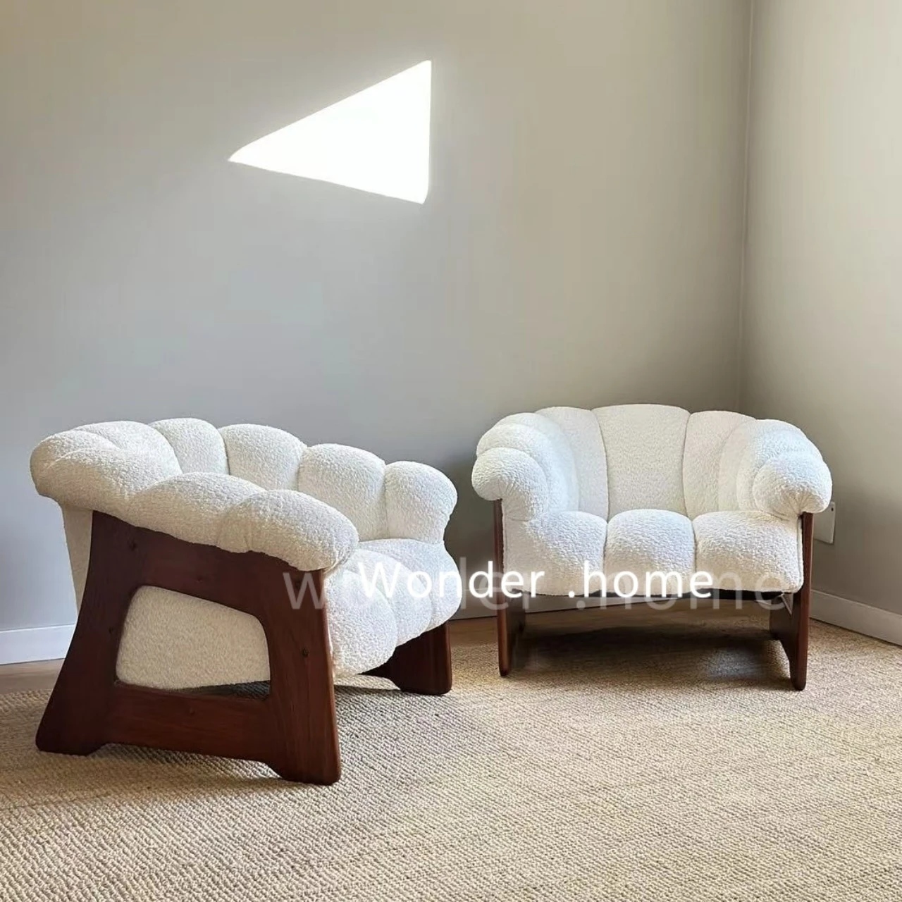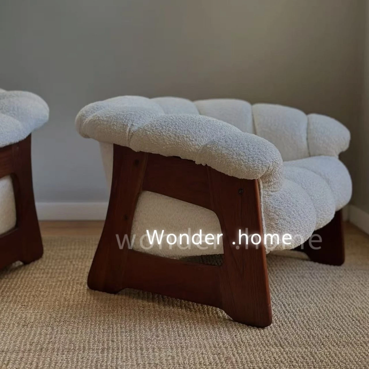 デザイナーのヴィンテージ1人用ソファ椅子|リビングに最適な高級家庭用ラウンジチェア|侘寂スタイルの民宿向け|天然木製の接待用チェアで、くつろぎのひとときをお届け!