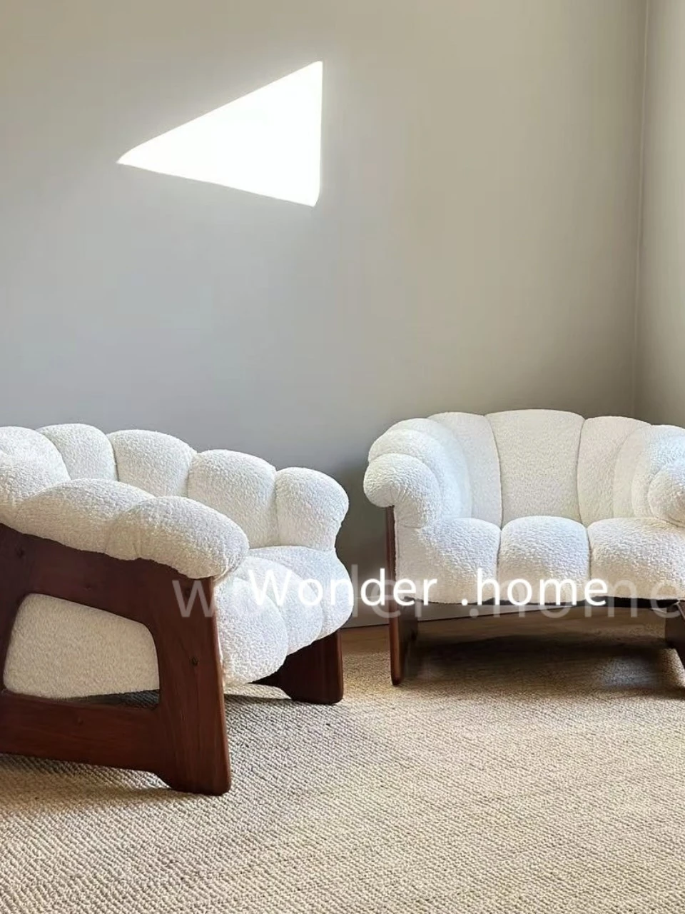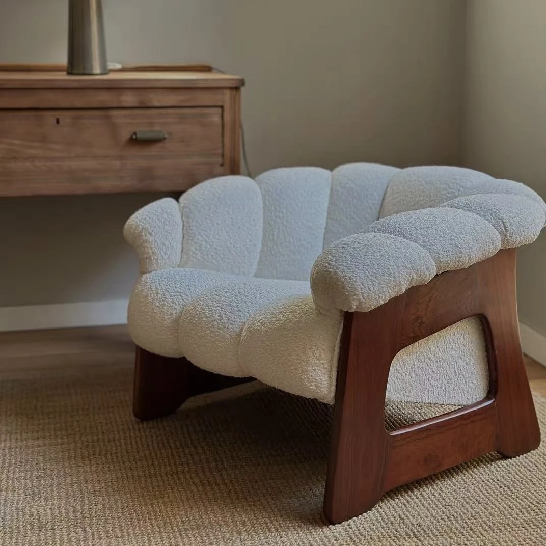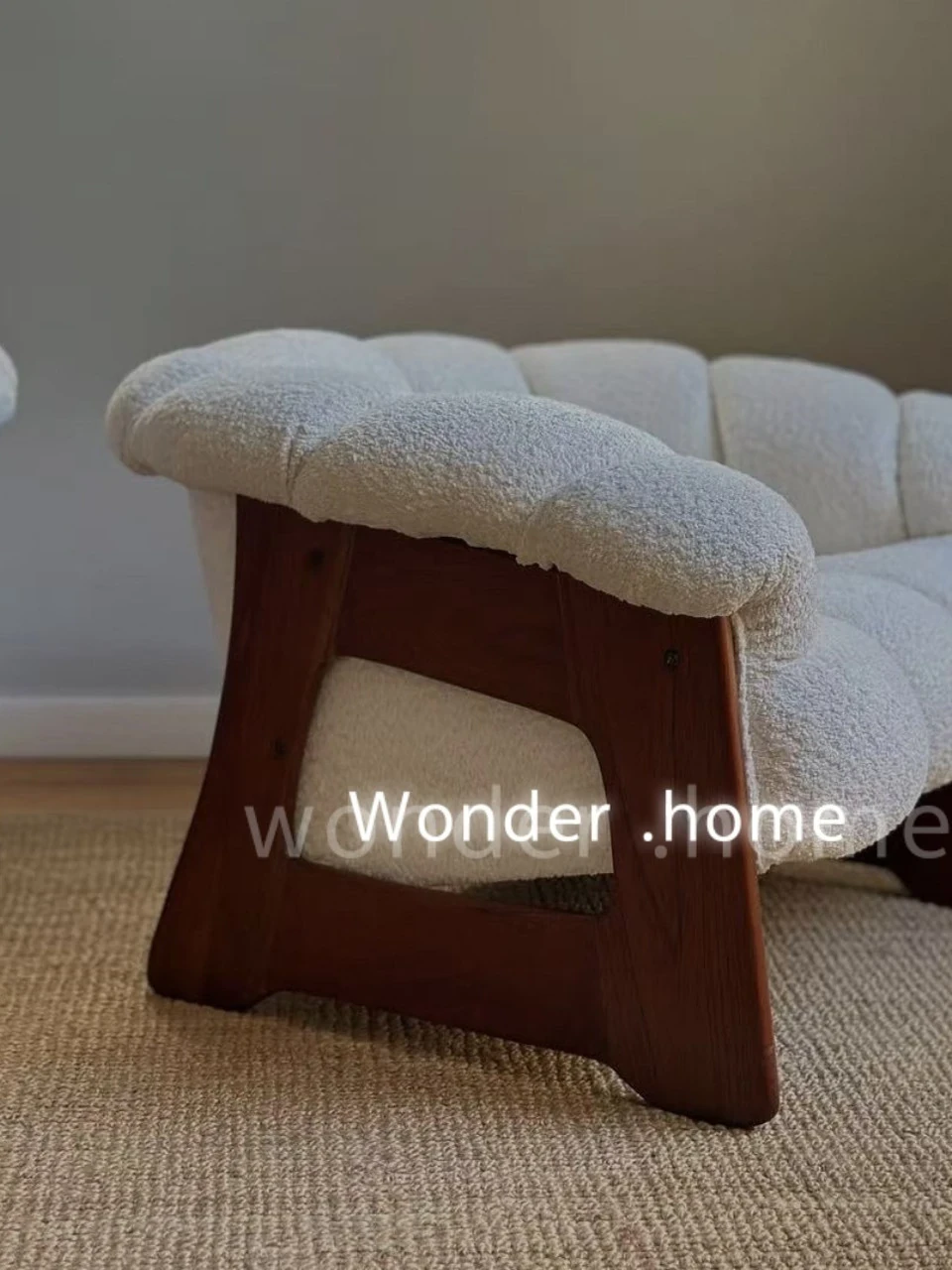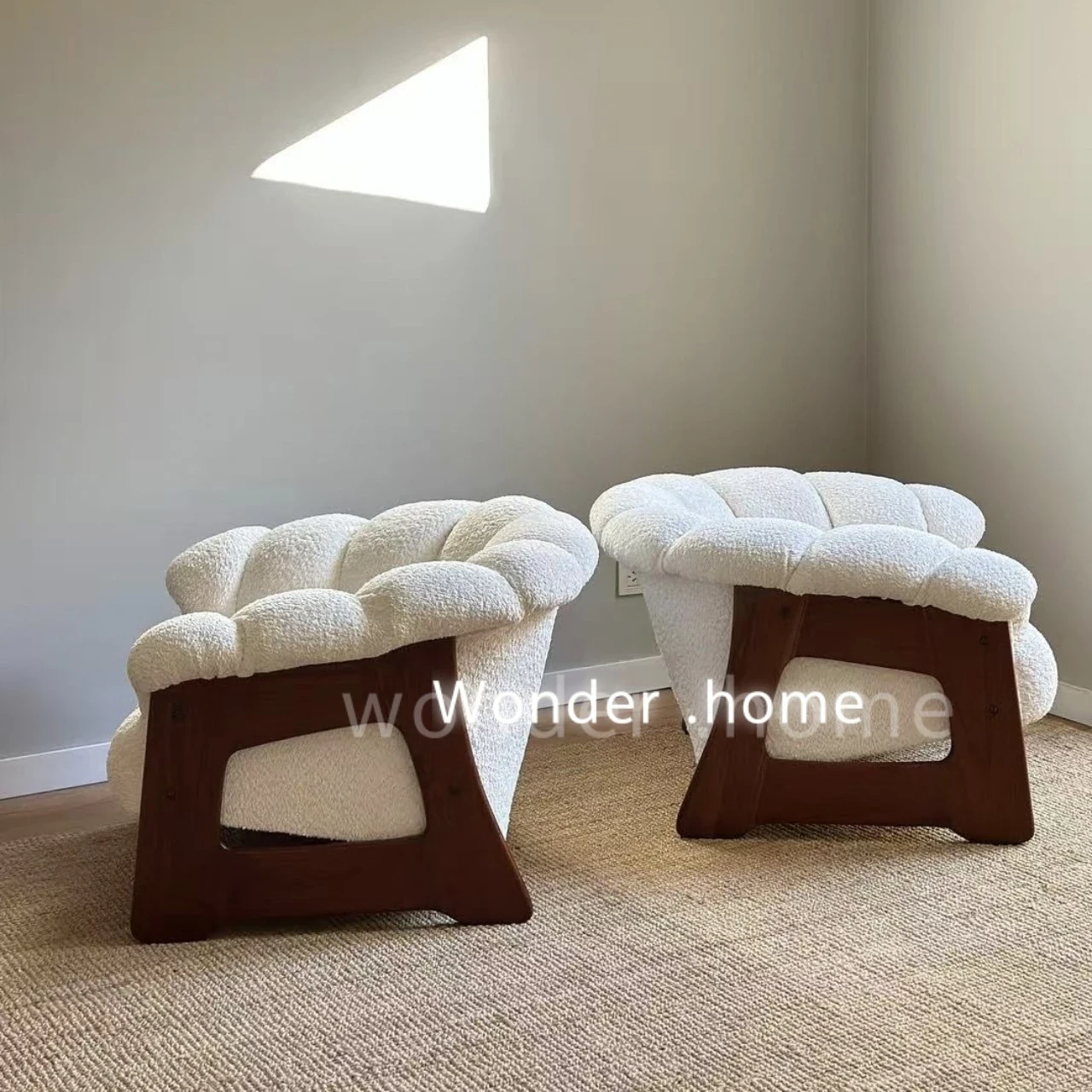 デザイナーのヴィンテージ1人用ソファ椅子|リビングに最適な高級家庭用ラウンジチェア|侘寂スタイルの民宿向け|天然木製の接待用チェアで、くつろぎのひとときをお届け!