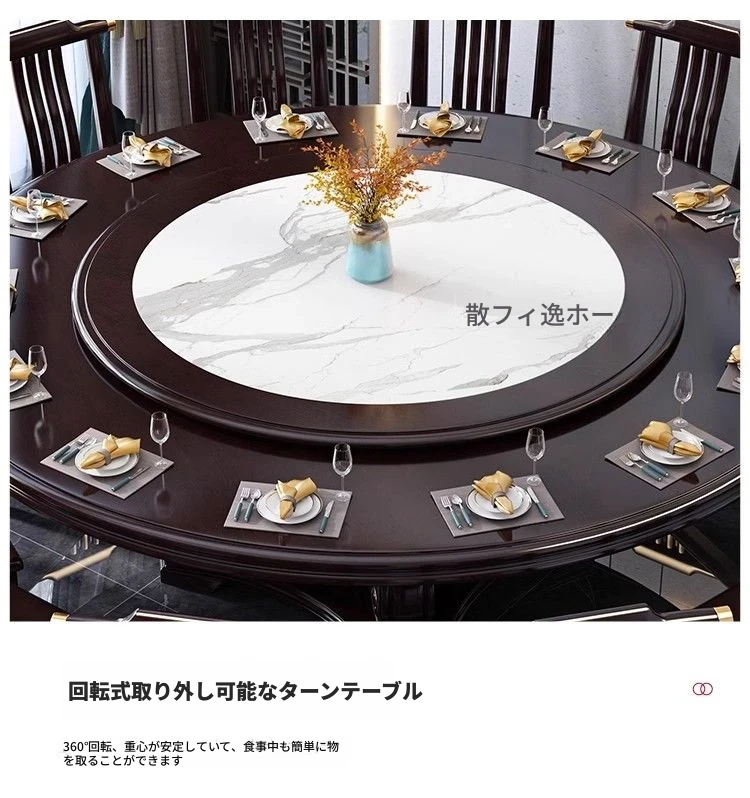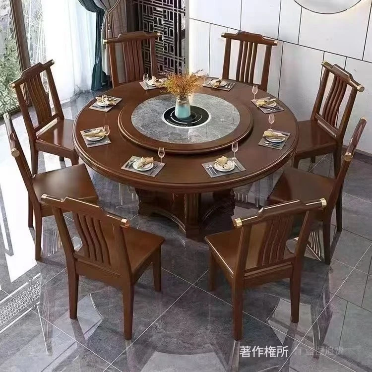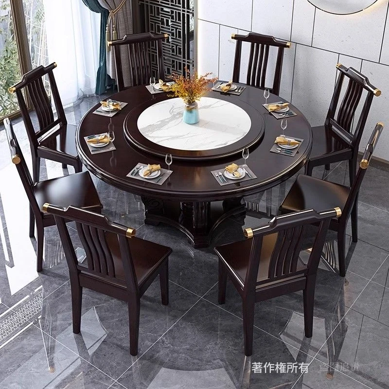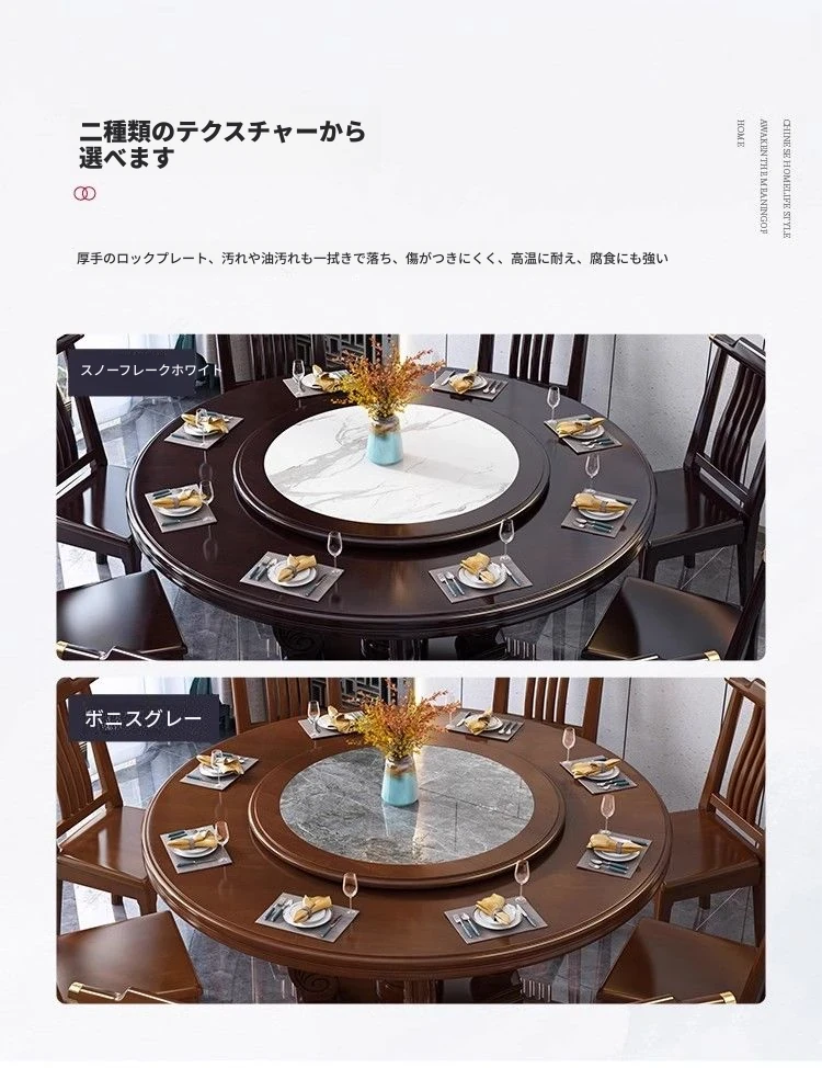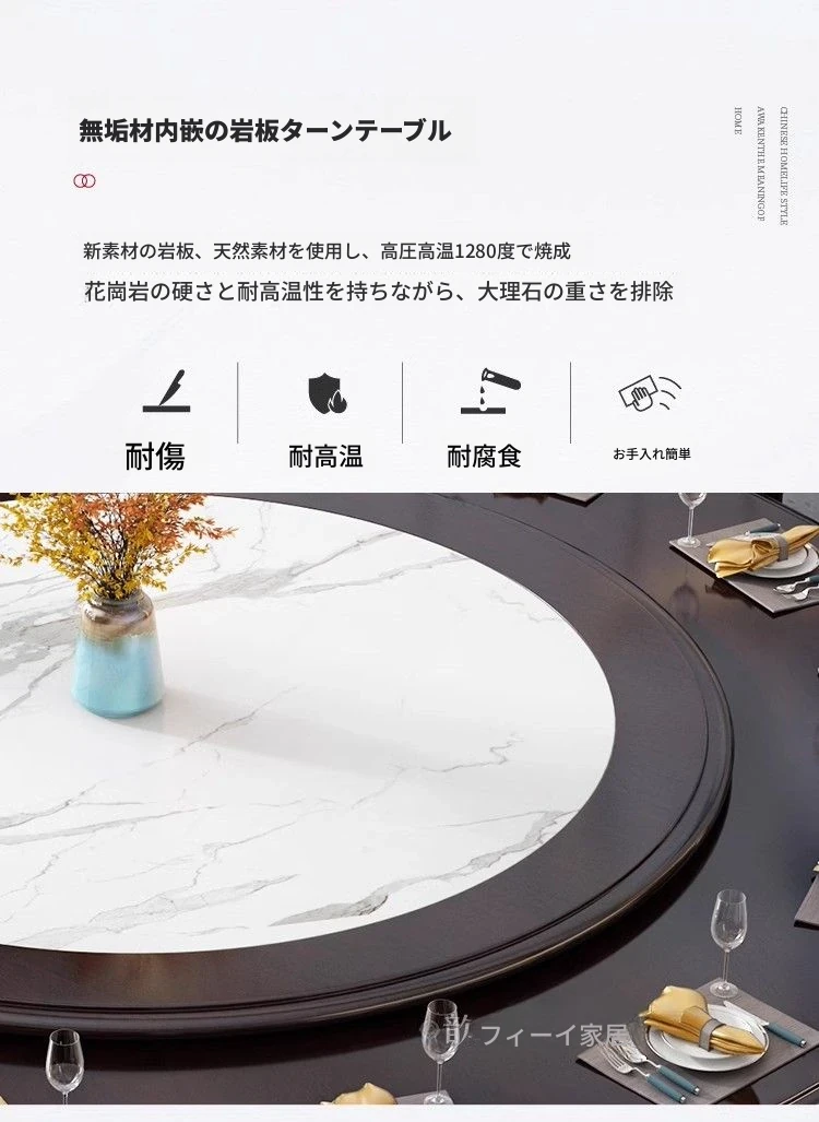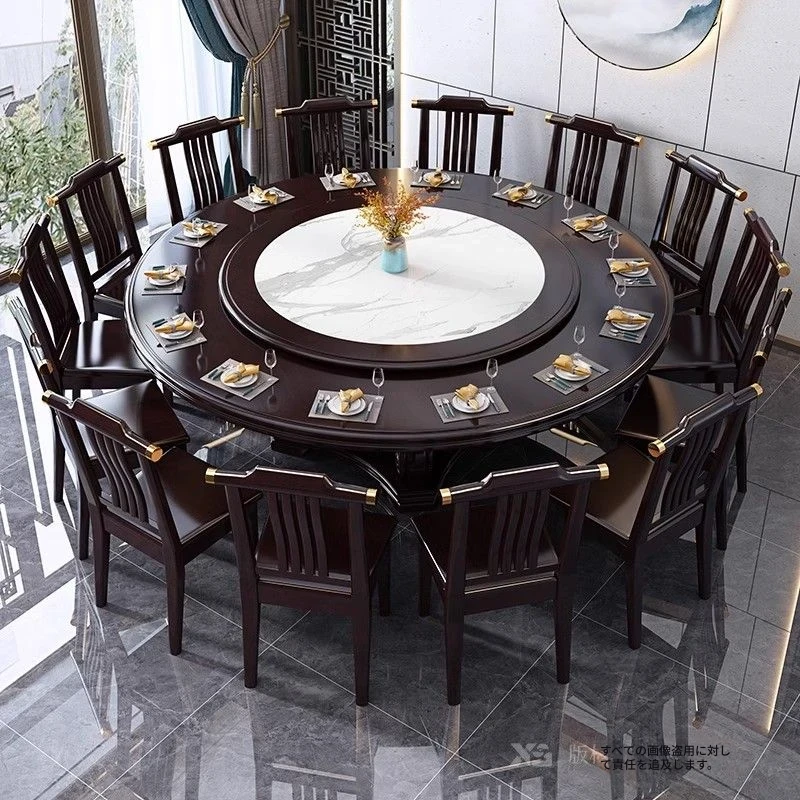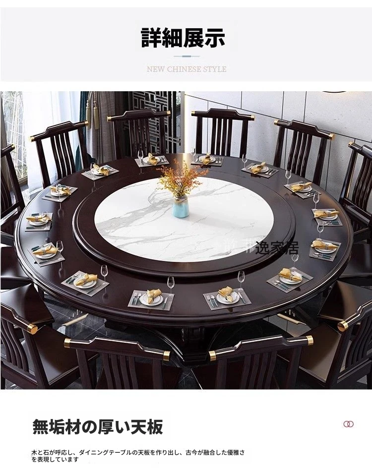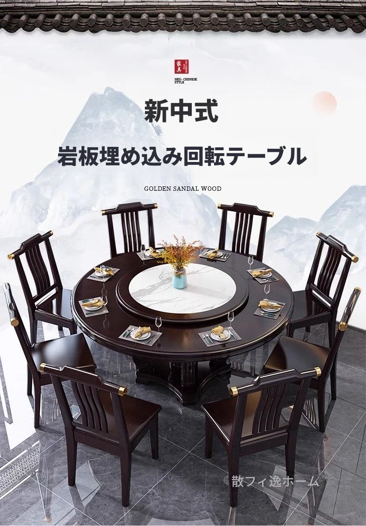 中華風の天然木製ダイニングテーブルセット|高級岩板デザイン|家庭用・レストラン用|丸テーブル・電磁調理器対応|ホテル向け回転テーブル|おしゃれで機能的な食卓を実現!