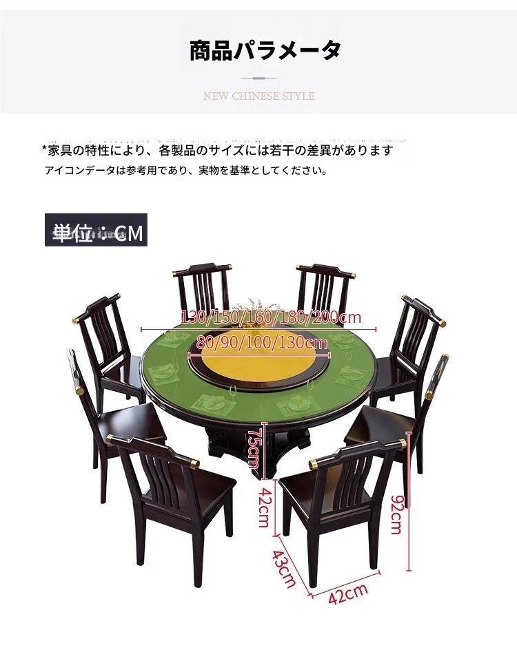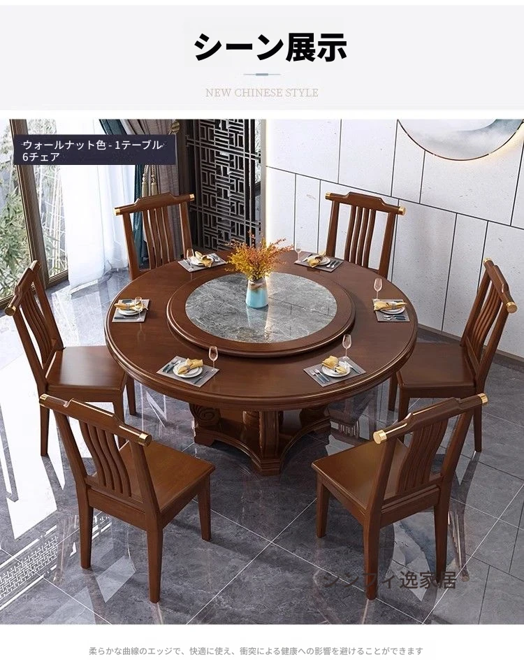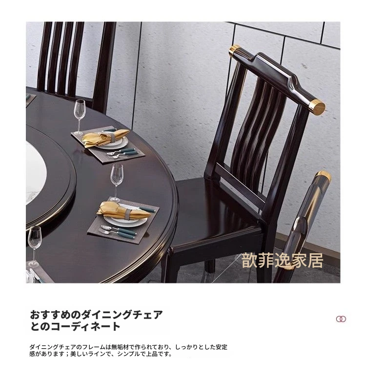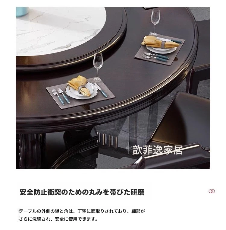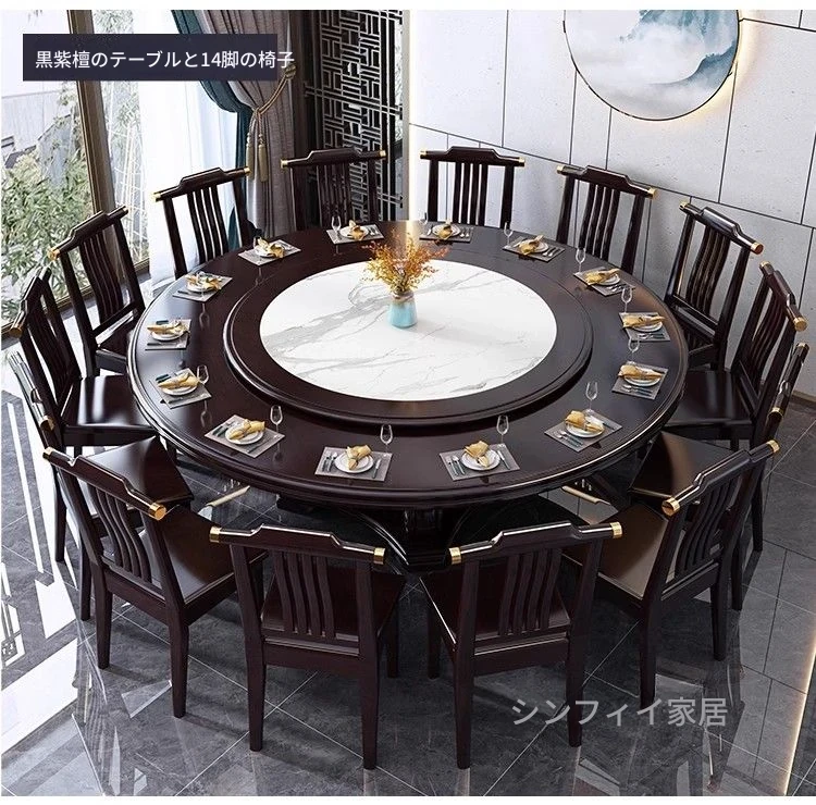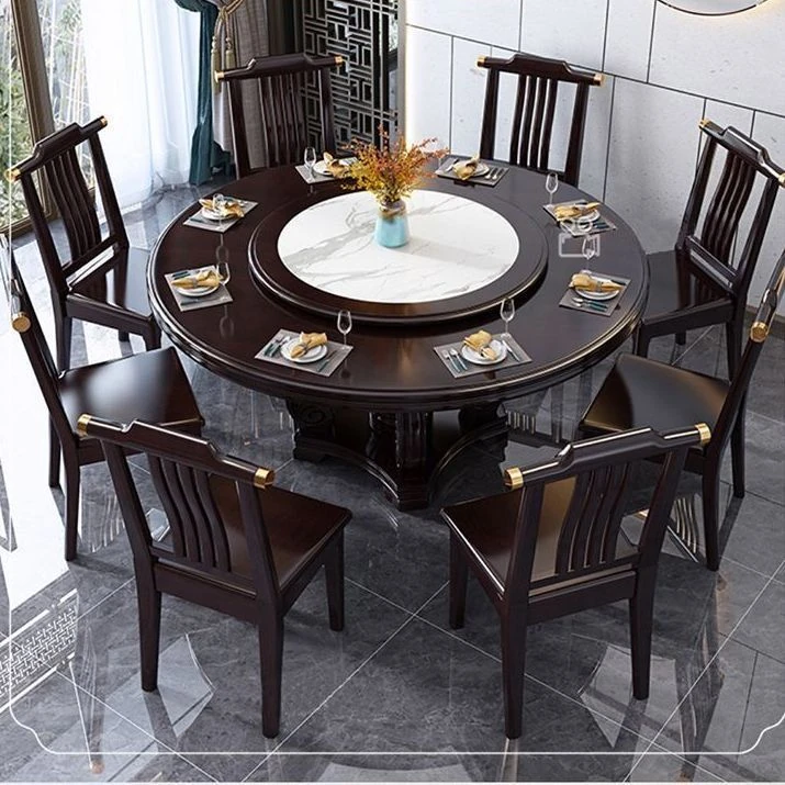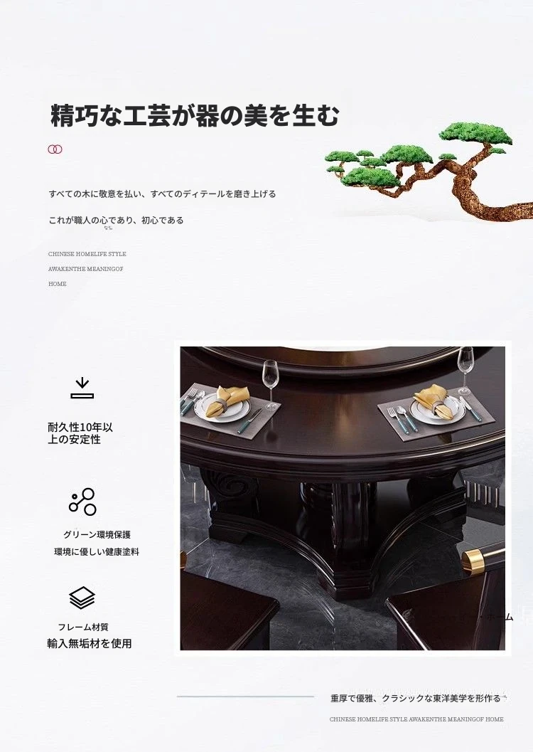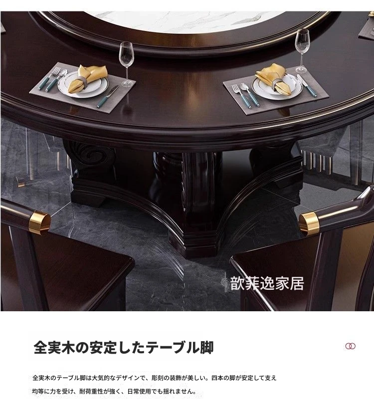 中華風の天然木製ダイニングテーブルセット|高級岩板デザイン|家庭用・レストラン用|丸テーブル・電磁調理器対応|ホテル向け回転テーブル|おしゃれで機能的な食卓を実現!
