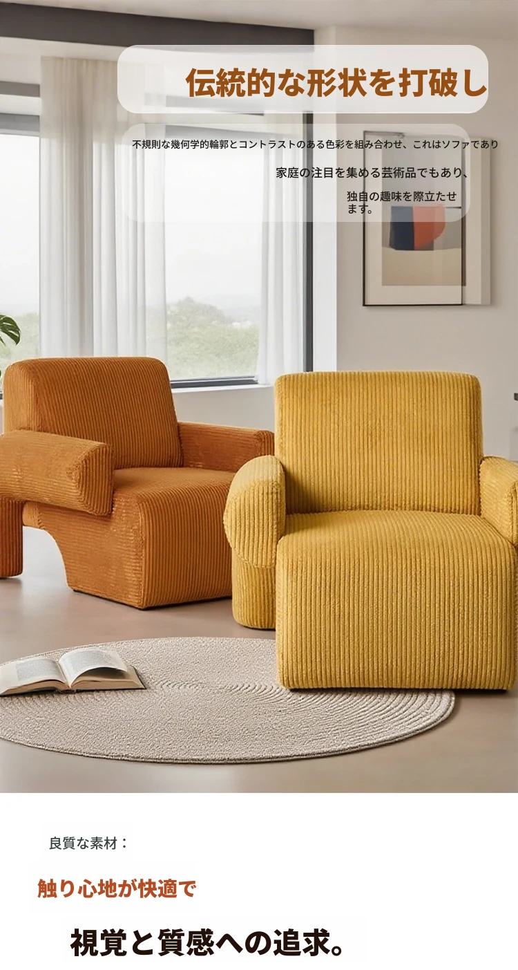 ラグジュアリーなデザインの一人掛けソファ—クリエイティブなスタイルで、リビングや寝室にぴったり。小さなスペースにも最適なリラックスアイテム。トレンドを押さえたネット人気モデル!