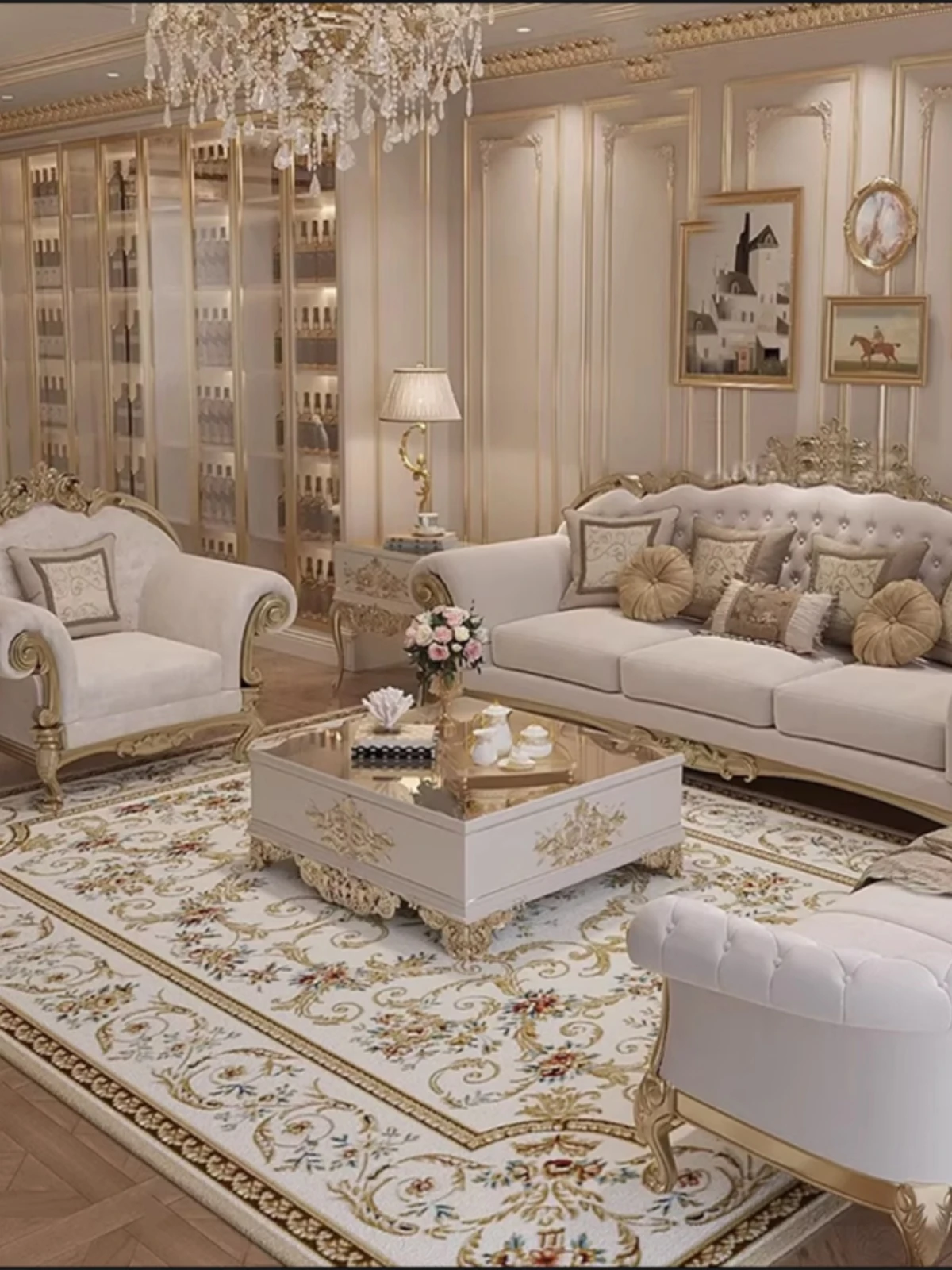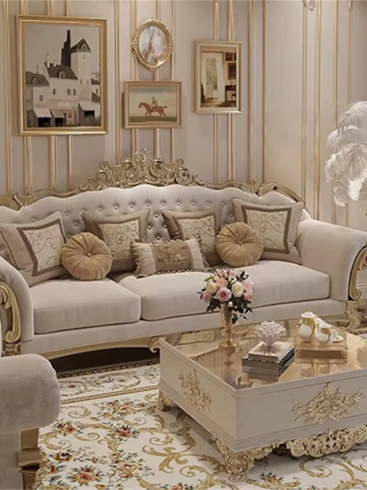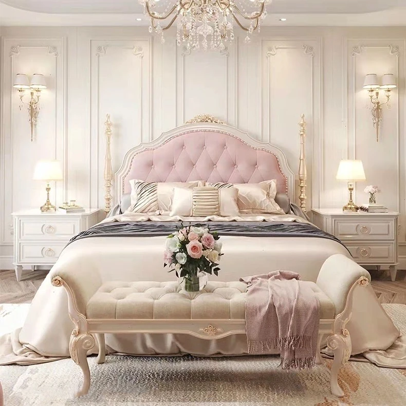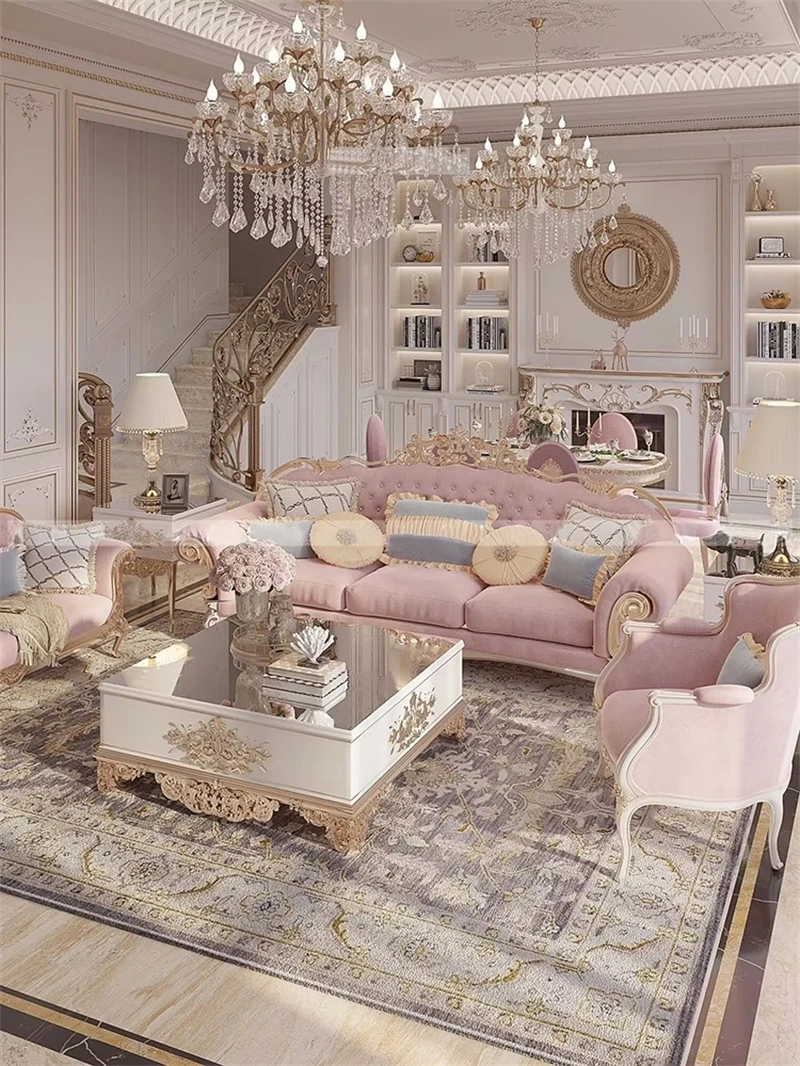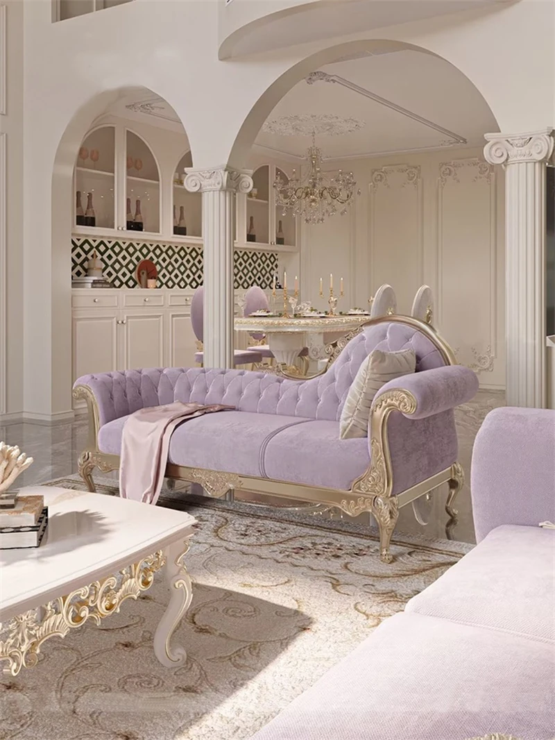 フレンチロイヤルスタイルの無垢材彫刻リビングルームソファセット - 高級感溢れる新しい軽奢ネオクラシック家具。洗練されたデザインで、優雅な空間を演出します。