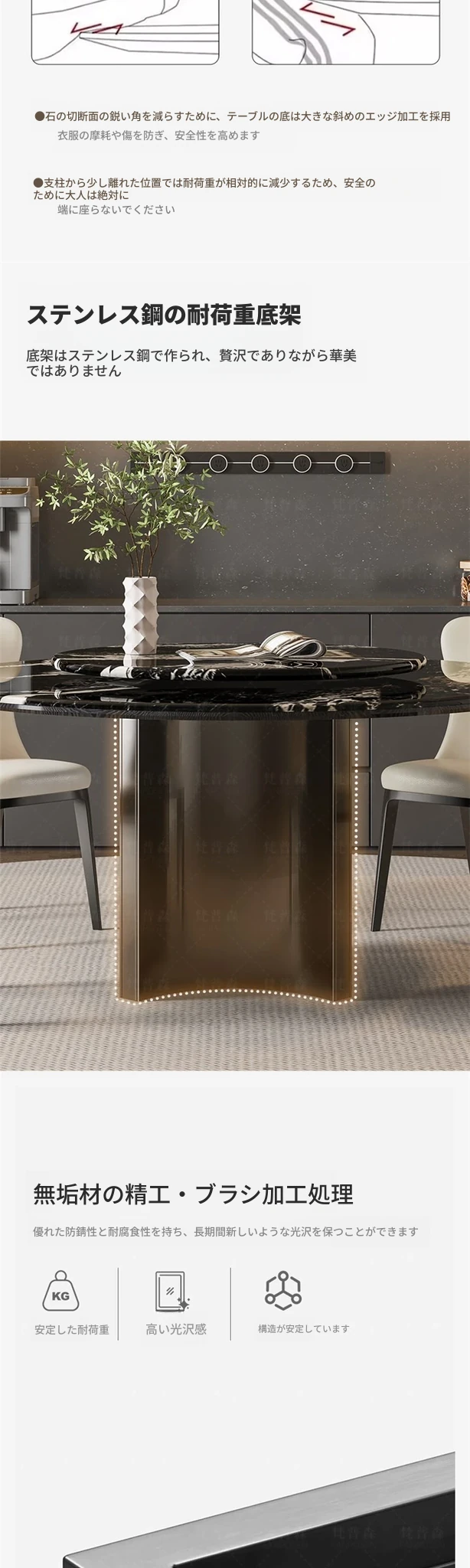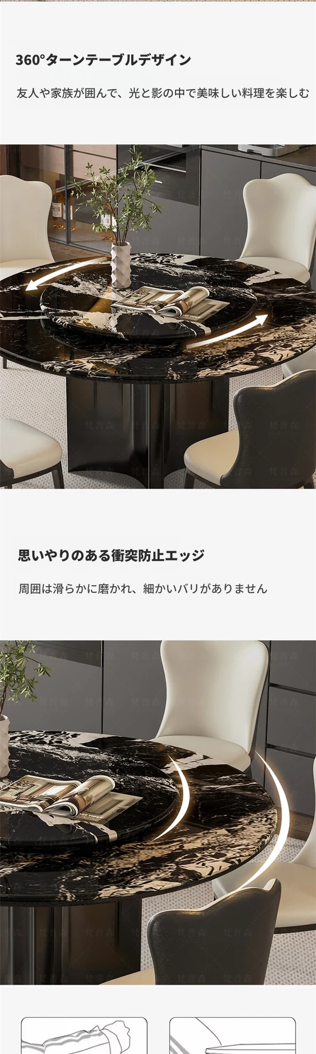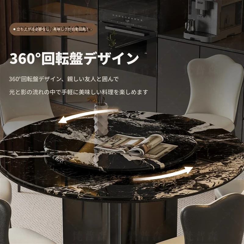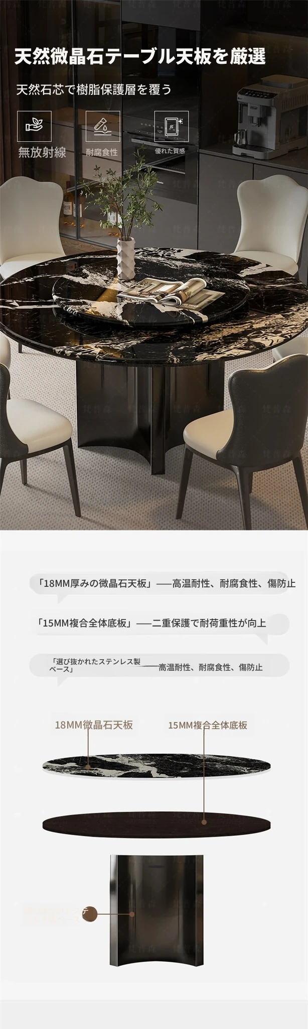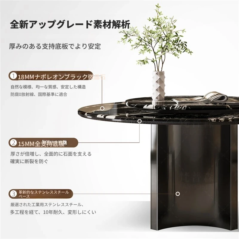 【アップグレード版全托】ナポレオンブラック天然微晶石ダイニングテーブル+回転台